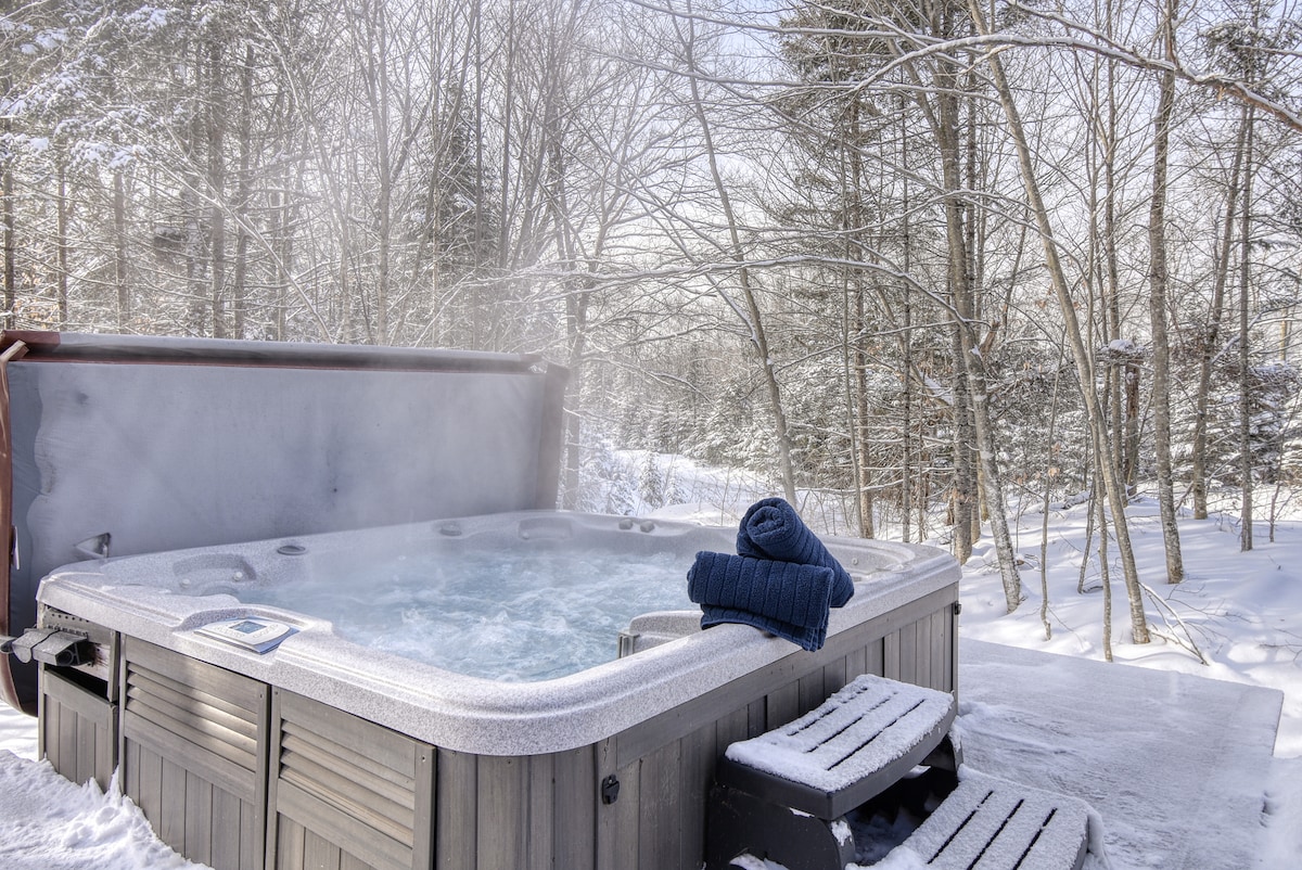 Welcome to SpaHaus Chalet #128 ! Surrounded by nature & stillness, it is your perfect retreat & anti-stress destination! Near Mt-Tremblant & Mt-Blanc you’ll experience the best skiing in the region. Other amazing winter activities & long walks around beautiful Lake Superieur can be enjoyed. Just a short walk to Club de la Pointe, fine groceries & a lovely bistro with lake views. Leave your cares behind, grab your favorite book & come create sweet memories with a glass of wine by the spa.