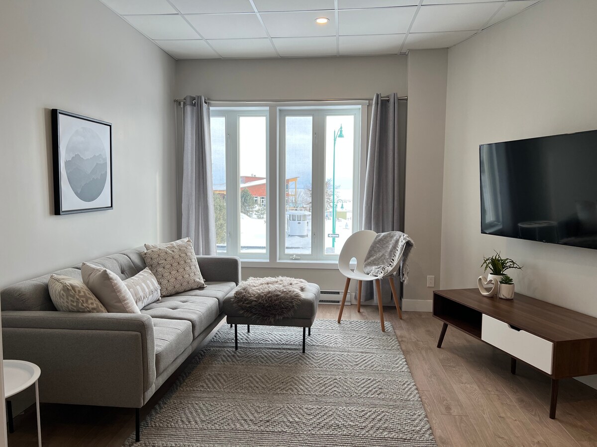 Accessible unit with a breathtaking direct view of Lake Superior (see balcony photos). Includes free access to Club de la Pointe, offering a wide range of activities for all ages. 🏡 Loft suite on the 2nd floor ✨ A dream destination for a relaxing getaway or resort-style remote work ✅ Walking distance to a shared pool, tennis court, kayaks, canoes, pedal boats, and a fitness center(*Some activities offered by Club de la Pointe may be subject to daily schedules or summer availability.)