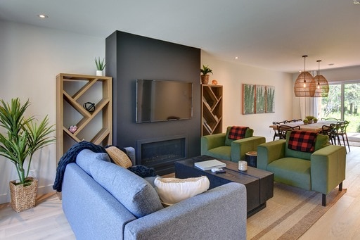 Experience ultimate luxury in this modern 2-bdrm, 2-bath condo @Mont-Tremblant. Sleeps 9. Amenities include gas fireplace, heated bathroom floors, fully equipped kitchen, Weber BBQ, outdoor dining patio. Located next to Le Géant Golf Course, 1km from Tremblant village. Covered parking with EV charging. Access to shared spa pavilion with heated pool (summer only), exercise room, hot tub, outdoor fire pit, free shuttle. Fiber internet, smart TVs (one in living area + one in each bedroom).
