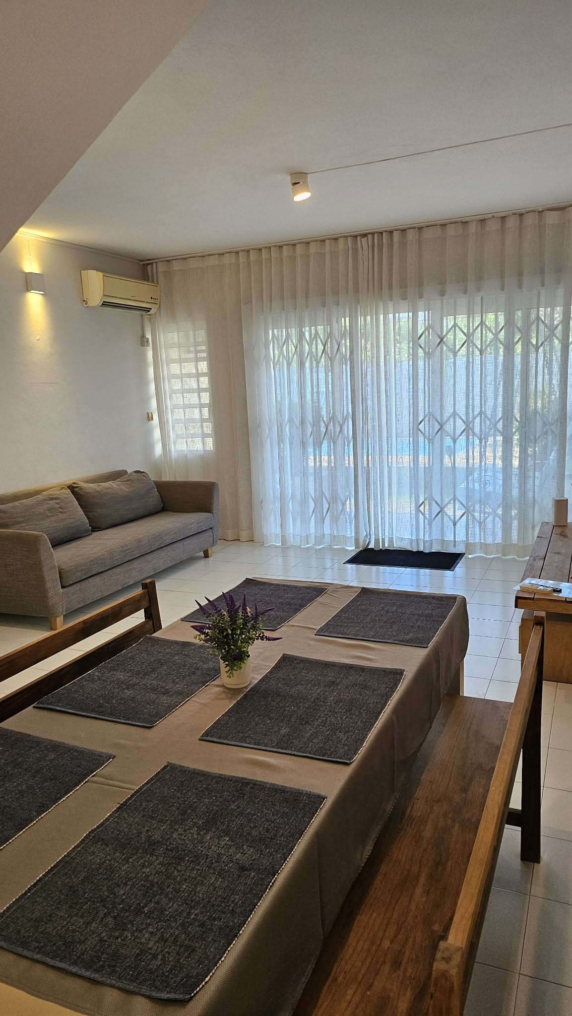 Our modern, comfortable and self catering townhouse of 170m2 is located in a quiet residential area in the heart of Grand Bay, (licensed by the Tourism Authority). Situated in a secured residential complex with swimming pool & parking just few blocks away from Super U shopping mall & the beach.. Promotional rate for the last week of October 2023!!!