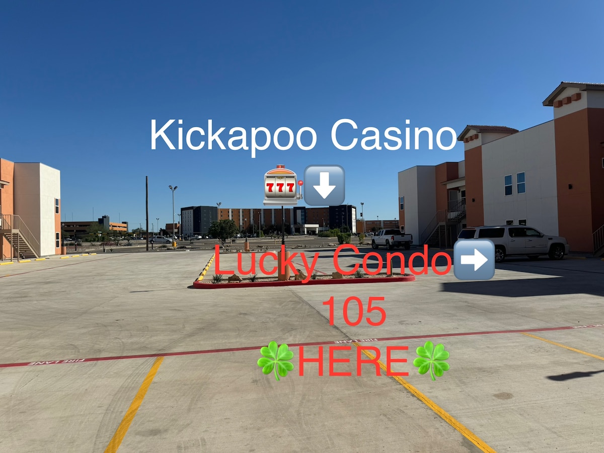 Come stay at this stylish & cozy condo, for your lucky getaway. This 2bd/2bath condo sleeps 4 comfortably. It is walking distance from restaurants, bars, & gambling at the famous Texas Lucky Eagle Kickapoo Casino. This condo features all new furniture and fixtures. Has a living area with fully furnished kitchen. Refrigerator, stove, microwave, & free WiFi are some of our great amenities. Contains a washer and dryer with 3 TV’s, 1 in each bedroom & 1 in the living room. Make our home yours!!