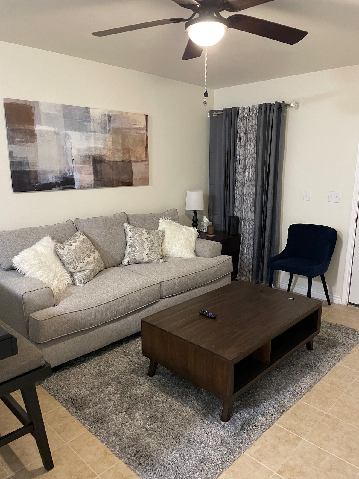 Kick back and relax in this calm, stylish space. New Condo is fully furnished & in close proximity to The Kickapoo Lucky Eagle Casino. 2 Bedrooms, 2 full baths, open living area with kitchen. Washer & dryer. 44" TVs in each bedroom and 55" TV in living area. King bed in Master, 2 twin beds in guest room, queen pull out sofa bed in living room. Stove, refrigerator, microwave, Keurig coffee maker, & fully equipped kitchen. Towels, toiletries, iron, ironing board, & Wifi available.