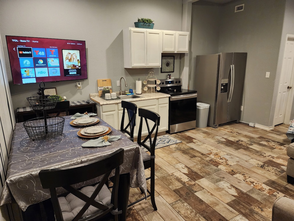 This stylish place to stay is perfect for group trips with a spacious space. Make your trip memorable in our Modernized Stay! We are less than 5 min. From the border to Mexico and so close to the only Casino in Texas! Restaurants around town are about 3 minutes away. We have free WiFi and a Working space for your business needs. We also have a free parking space. Wether you’re here for business or a memorable time, you can’t go wrong staying at this home away from home.