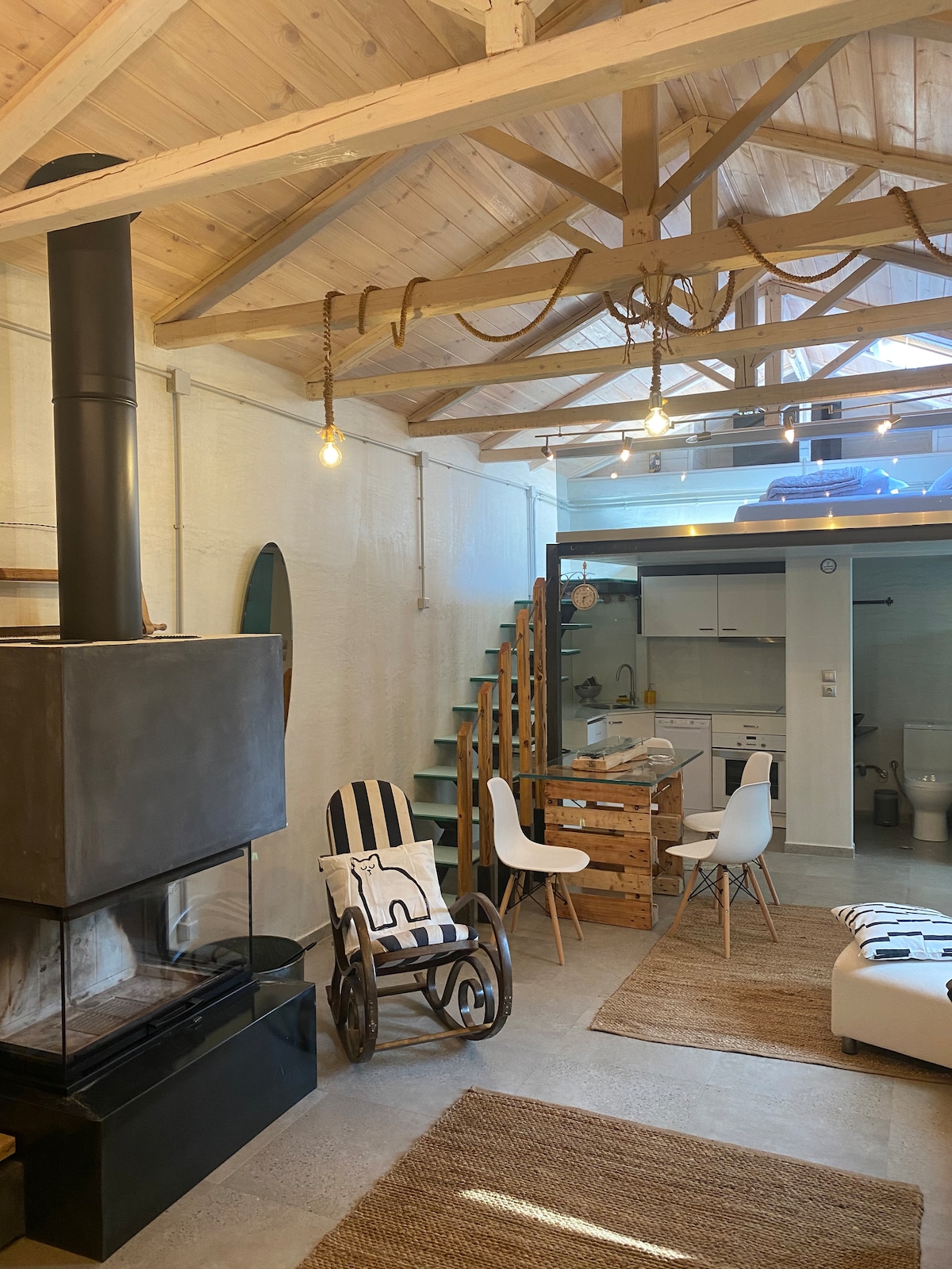 Modern, new studio lets you wake up under the rocks of Meteora.This fully equipped studio is perfect for travelers and couples seeking an unforgettable getaway.Start your morning with a traditional Greek coffee in our yard.Enjoy the tranquility and the sounds of our own private retreat, with the adventure of Meteora at your doorstep!