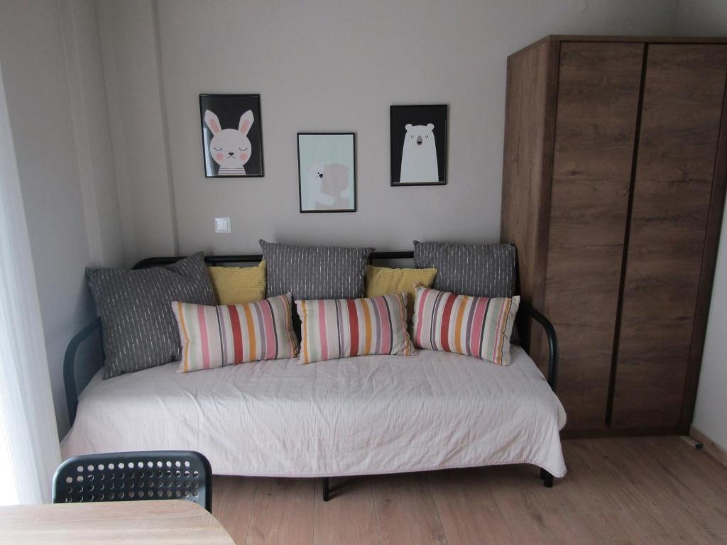 Recently renovated apartment 39 sq.m. on a two-story detached house. It can accommodate 2 adults and 2 small children. It consists of a bedroom with a double bed (1.70 x 2.10), a living room with a double sofa bed (1.60 x 1.10), a balcony overlooking the garden, a fully equipped kitchen and a bathroom. The space has autonomous heating with natural gas and a/c. Possibility to use BBQ, dining room on the porch and private parking space.