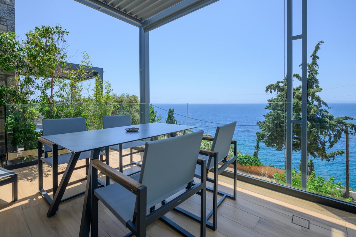 Nestled among olive trees, our modern stone villa is just a 5-minute drive from the picturesque village of Agios Nikolaos and 300 meters from the beach. With 5 bedrooms (2 with ensuite bathrooms), 4 bathrooms, and a WC, it comfortably accommodates families. All rooms feature balconies, while the fully equipped kitchen and spacious dining table for 10. Enjoy heating and cooling options, a large parking area, and an inviting modern and traditional design blend. Your perfect retreat awaits!