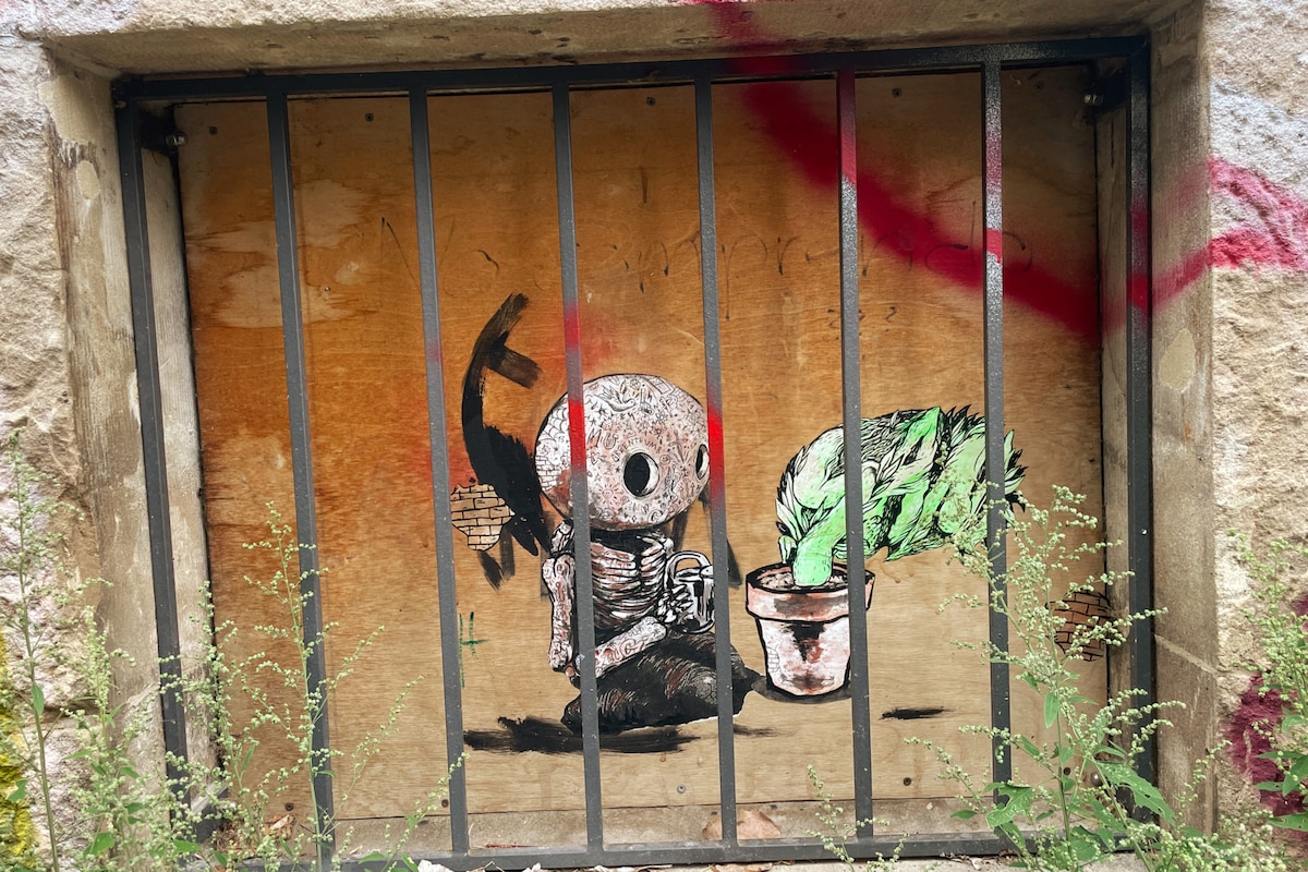 Die Remise ist 1875 erbaut und steht unter Denkmalschutz. Nach der Nutzung für Fuhrwerke, Pferde und Kühe war eine Marmorwerkstatt dort zuhause, dann eine Schlosserei und später ein Künstleratelier. Direkt davor schaut man in den kleinen Hofgarten.