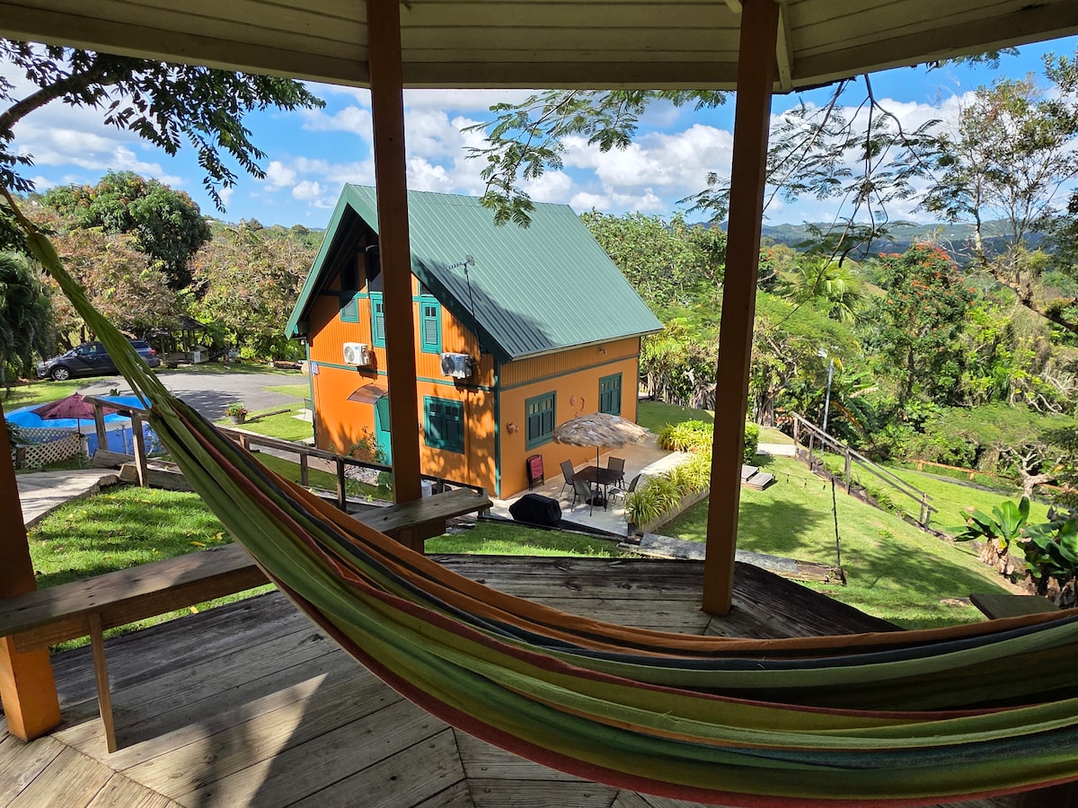 We are proud to announce that our property is now 100% eco-friendly, powered entirely by solar energy! Enjoy your stay knowing that you’re reducing your carbon footprint while still enjoying all the comforts. Complete with 7 rooms will fit up to 14 guests. Every room is air conditioned. Conveniently located near many great restaurants and bars. The beach is 10-15 minutes away and the breath taking views of the valley from the mountain top. We are also located about 20 min from Rincon.