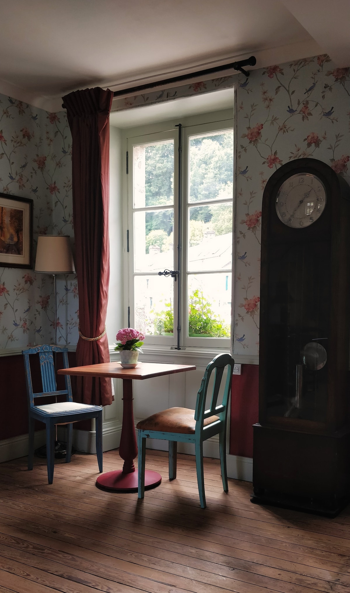Vous adorerez le décor élégant de cet hébergement de charme. Votre chambre se trouve au deuxième étage , avec une salle de bain privative. Un espace pour préparer vos repas est réservé aux locataires . Nous pouvons également vous proposer vos déjeuners où dîners pour 14€/pers(apéritif au café et un verre de vin) et petits déjeuners 6€/pers. L’été vous bénéficiez d’une table, transats dans le jardin et piscine (horaires) possibilité 1 ou 2 ch supl à 19€/et 15€chacune
