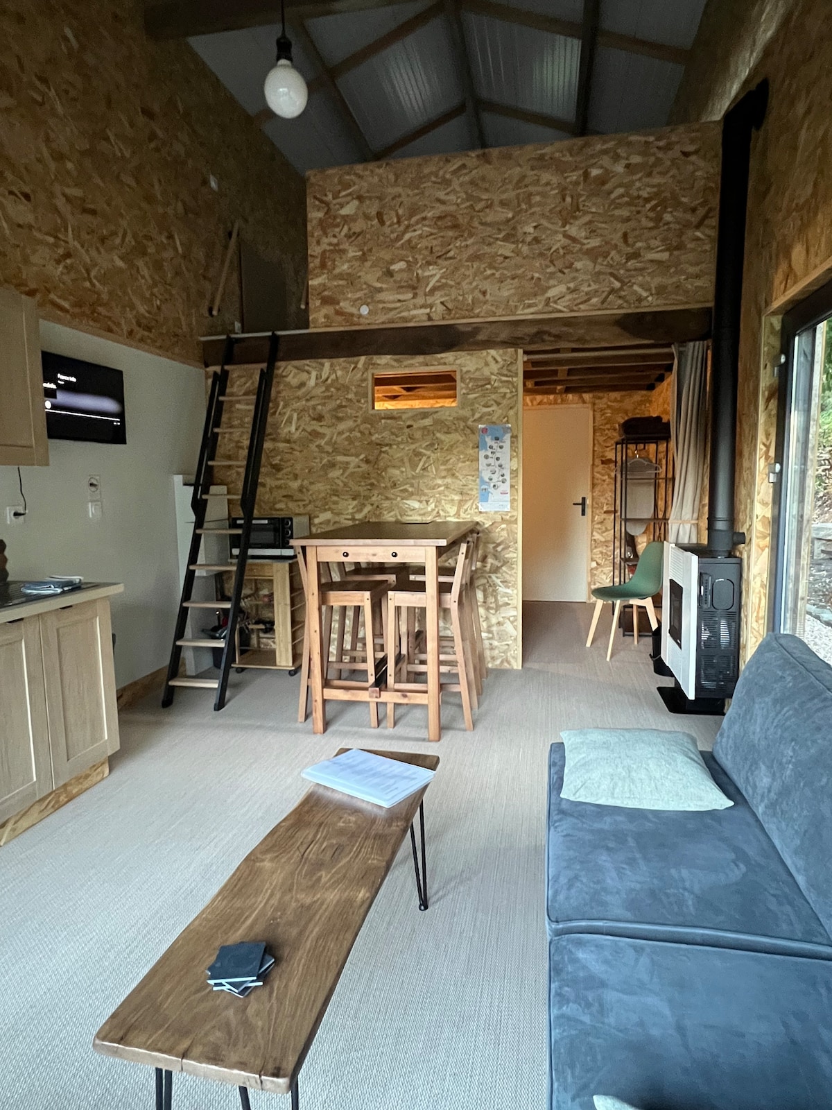 Vous serez accueilli dans une Maison de 80 m² avec une pièce de vie de 35 m² avec poêle à bois et une cuisine ouverte. Tout le nécessaire pour cuisiner est à disposition ( plaque induction, micro-onde/four, Nespresso, cafetière classique et filtres). La salle de bain est composée d'une douche, d'une machine à laver, d'un plan vasque et de rangements. Elle dispose de 4 chambres accueillant jusqu'à 8 couchages. La maison dispose d'un toilette séparé de la salle de bain.