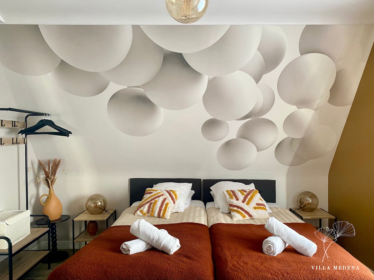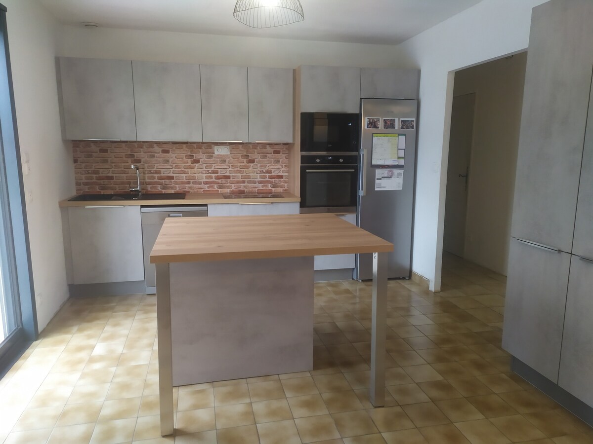 Détendez-vous dans ce logement calme et élégant refait entièrement a neuf en 2025 avec matériaux de qualité. Vous pourrez profiter d’un espace spa avec vue sur le jardin nos deux chambres sont équipées de lit king size pour un maximum de confort salon, salle a manger,cuisine entièrement équipés Thé, café, sucré, sel,poivre....a disposition. Cour privée pour les motos et vélos (terrain clos ), largeur accès 1 m. station de charge véhicules électriques a 200m .