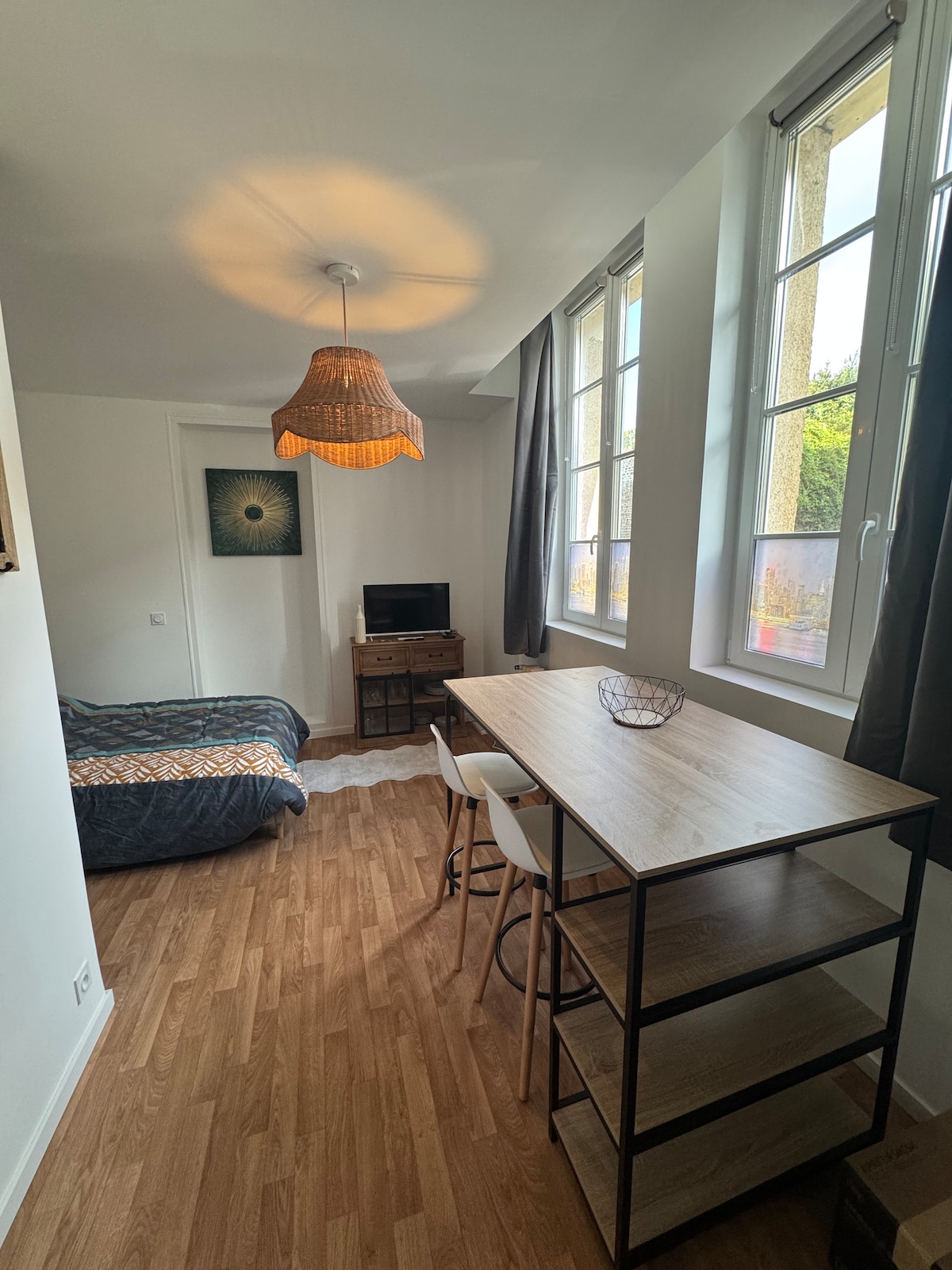 Studio de charme, avec lit à mémoire de forme, wifi, télévision, salle d'eau (douche), kitchenette équipée, petite cour extérieure avec salon de jardin. Quartier Calme, Stationnement Gratuit Tarif dégressif sur long séjour sur demande. Les cyclistes sont les bienvenus. Le terrain est clos et les vélos sont en sécurité.