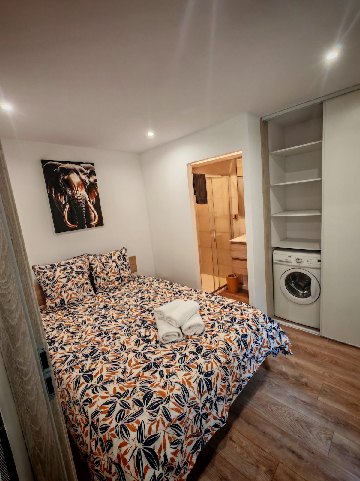 Logement entièrement rénové composé d’une chambre avec un lit double 140x190cm équipée d’une literie neuve, une salle de bain avec une douche à l’italienne, un wc séparé, une cuisine équipée avec un four, un micro ondes, un frigo-congélateur, une machine à café de type senseo, et un coin salon. À l’extérieur, vous trouverez un coin jardin. Parking sur place au pied du logement.