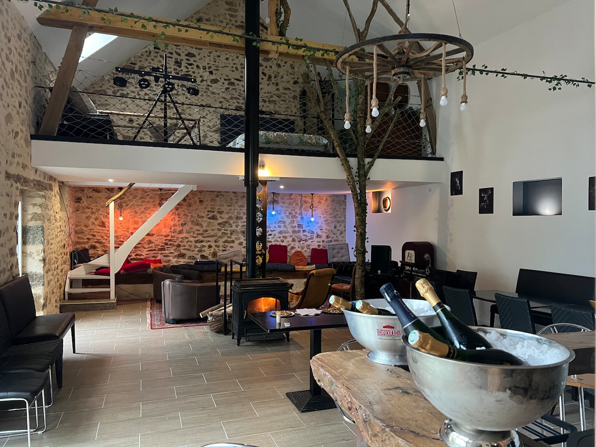 Grange atypique faite autour du bois, arbre, branches… Grand salon cosy , mezzanine avec 2 lits 160 et 140 , douche atypique. un coin bar , micro onde, évier, frigo, baby foot , tv grand écran… En extérieur: bain nordique au feu de bois chauffé pour votre arrivée ( supplément), un brasero plancha, un pit fire, bains soleil, terrain pétanque. Le tout est privatif sur un terrain clos de 1500 m pour vos animaux. La maison attenante n’est pas occupée lors de votre séjour.