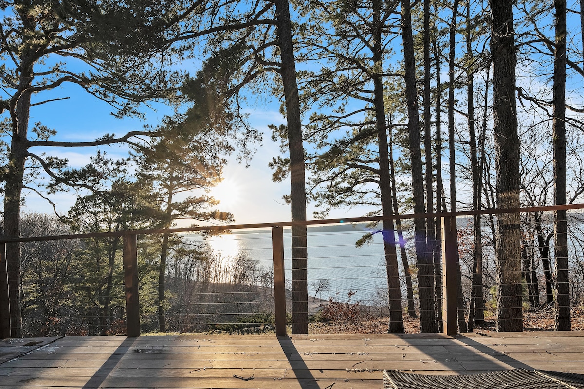 Enjoy the beautiful views of Lake Hudson from the large back porch as it sits atop a rocky cliff. It is a great place to take in the sunrise with a cup of coffee, relax with your favorite book, or just take in the wildlife. The three bedroom, two bathroom house is fully equipped for your comfort. Iron Horse Landing is a short walk down the hill. They have food, drinks and live music during the summer as well as boat rentals.
