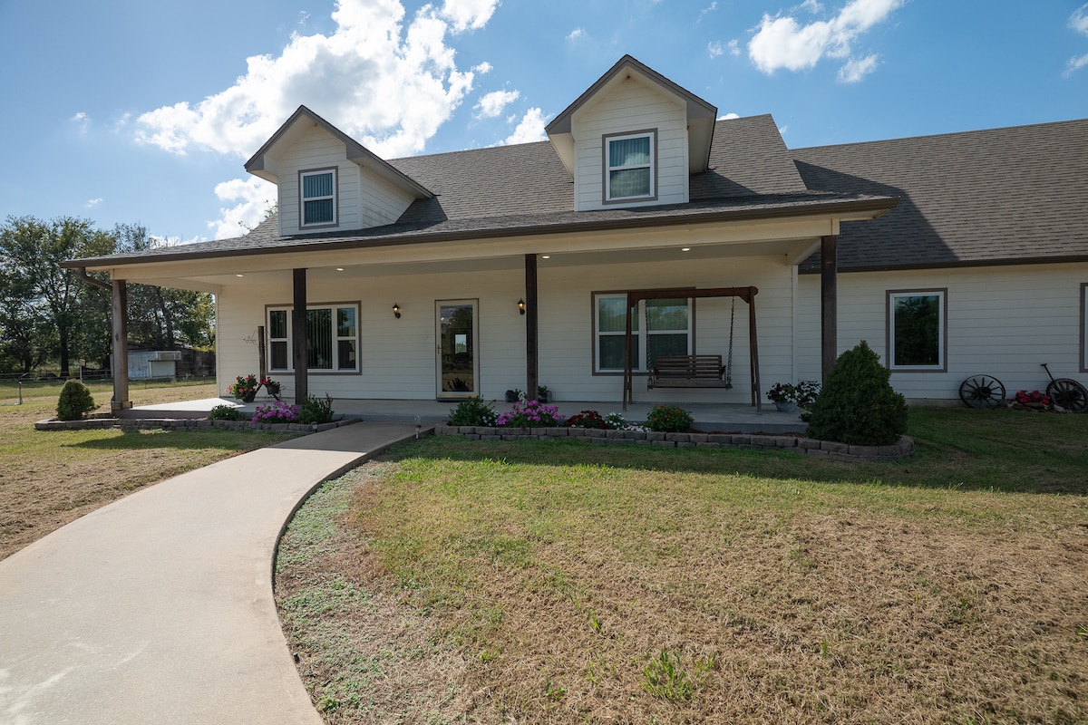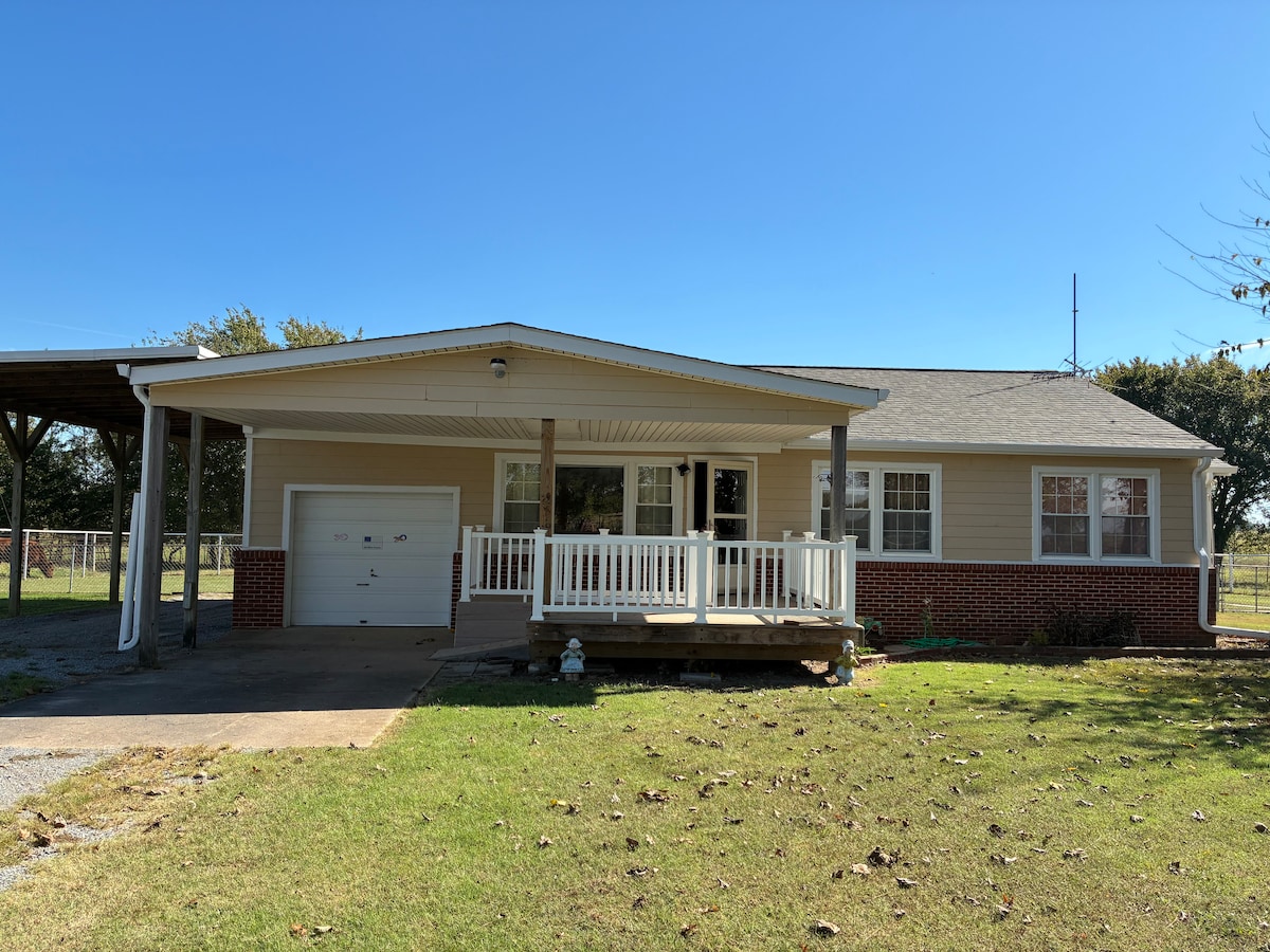 Come enjoy your stay with easy access to everything in the Pryor area. This centrally located home is 5 min from every thing including Walmart, Industrial Park, Rec Center ( with pool), numerous fast food restaurants, and park with splash pad! It is also just 10 minutes from Lake Hudson and Rocklahoma. The house has 5G wifi and TV is set up with Hulu, Disney+ and ESPN+. There is covered parking for your vehicle and a covered back patio to sit outside and enjoy your morning cup of coffee.