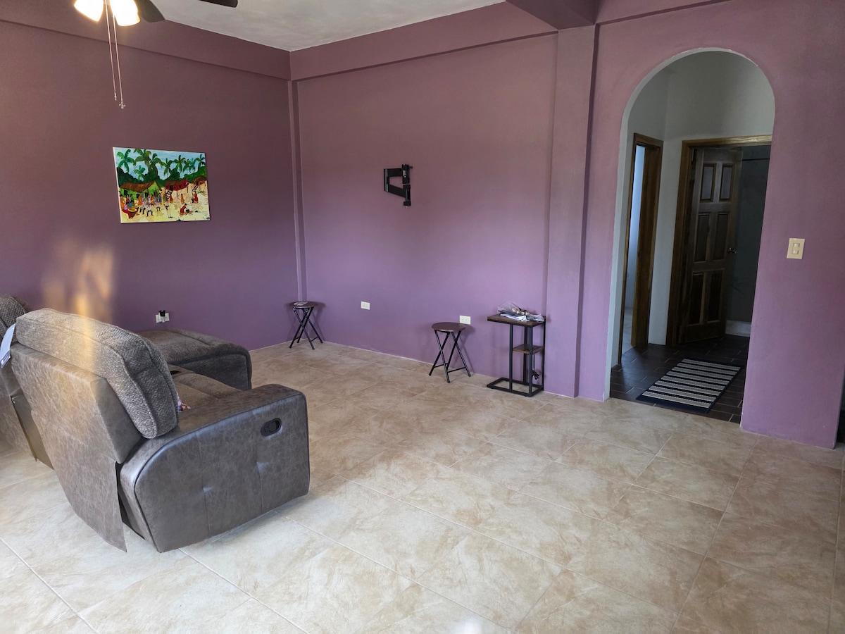 Immerse yourself in the spirited local culture of Hopkins fishingVillage at spacious Mana Garden-level one-bedroom flat! Soak up sun & sea on the Caribbean beach just 3 lots away then relax outside in our fenced tropical garden with palapa & hammock! Open concept living/dining/full equipped kitchen. A/C & WiFi throughout. Bedroom with queen bed. Host on site. Enjoy what Hopkins has to offer: restaurants/bars, shops, Garifuna music/drumming/cooking, reef/jungle tours & more are a short walk away!