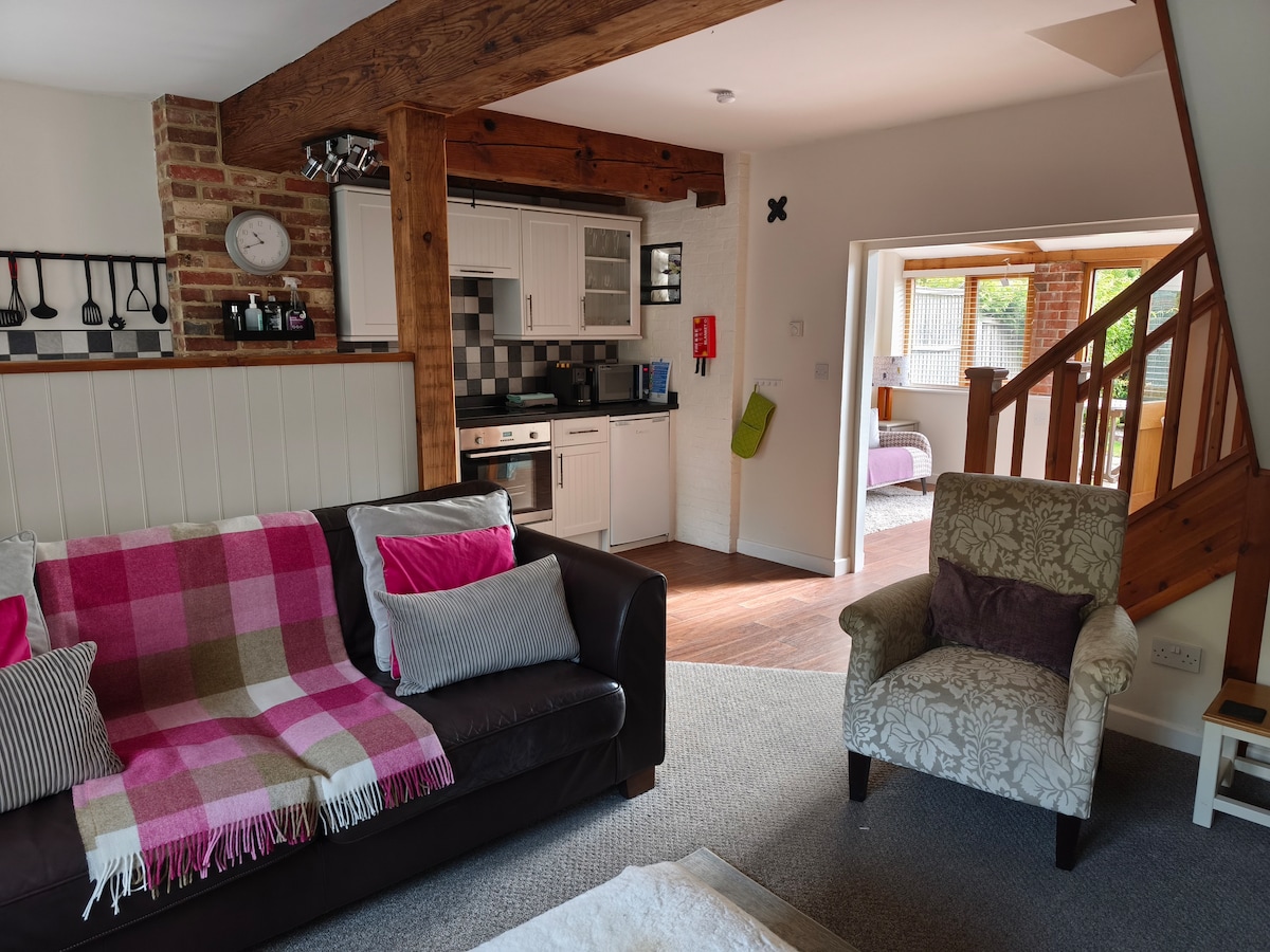 Situated in a secluded part of our 16th century farm, this detached, south facing cart barn has been converted to a very high standard. In an ideal location overlooking a large duck pond and with distant views to the South Downs. It is a great base for walking the Wealdway or cycling the Cuckoo Trail. Places to explore include Lewes and Eastbourne, 9 miles. Glyndebourne 6 miles. An excellent pub and restaurant is within a ten minute walk along country footpaths. The village shop 2 miles.