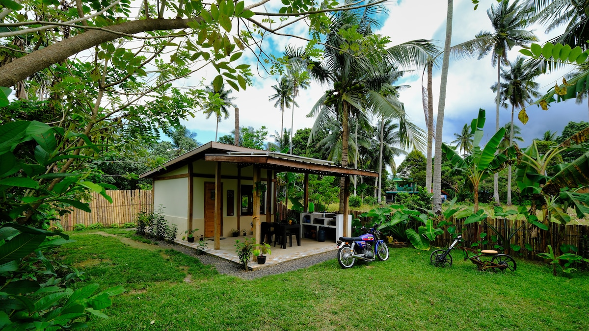 Beach cottage perfect for small to medium-size families, or small groups. Has a full kitchen (except oven). Gentle waves, ocean at your feet. Rustic interior décor with native materials. Access by ~125 steps, great exercise, not for the weak of heart! Parking at top. Great Mayon views from the beach cottage.