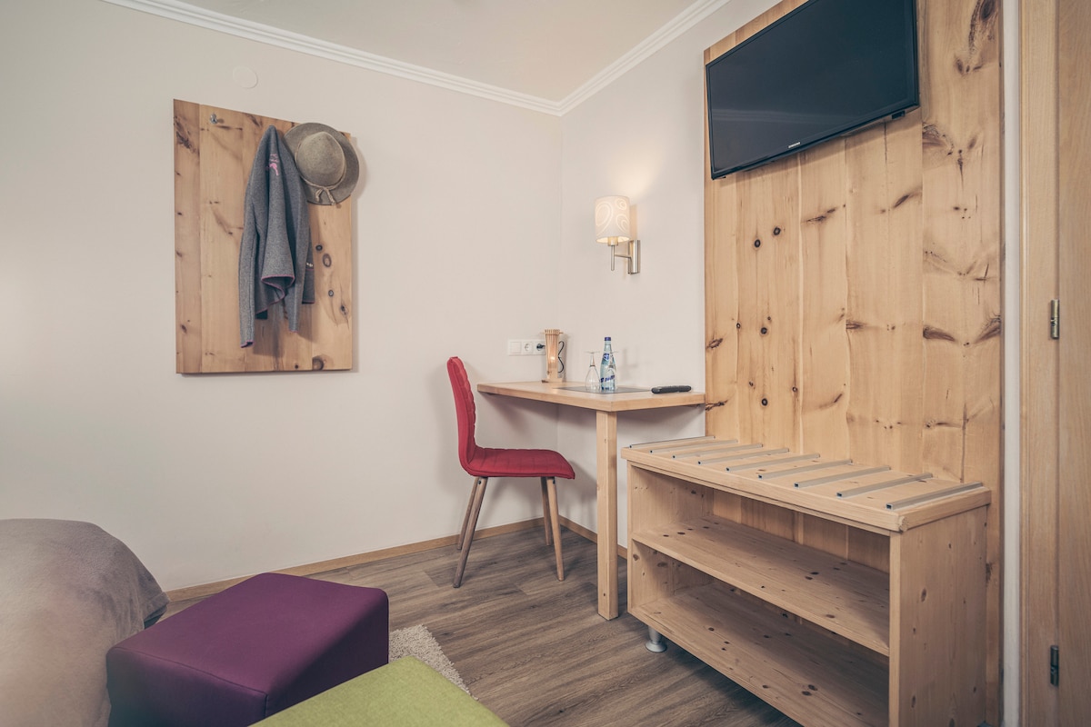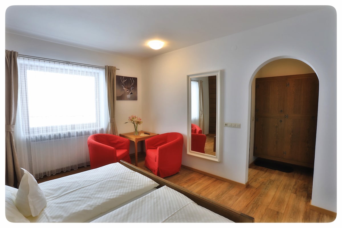 Our rooms combine modern comfort with traditional charm: high-quality beds, flat-screen TV, free Wi-Fi, a safe, and renovated bathrooms with a shower, toilet, and hairdryer. A hearty breakfast with regional products ensures a perfect start to the day. Ideal for skiing in winter and hiking in summer. Double Room: Cozy with a large bed, flat-screen TV, and Wi-Fi. Single Room: Comfortable with flat-screen TV, Wi-Fi, and towels. Cozy single room with bathroom