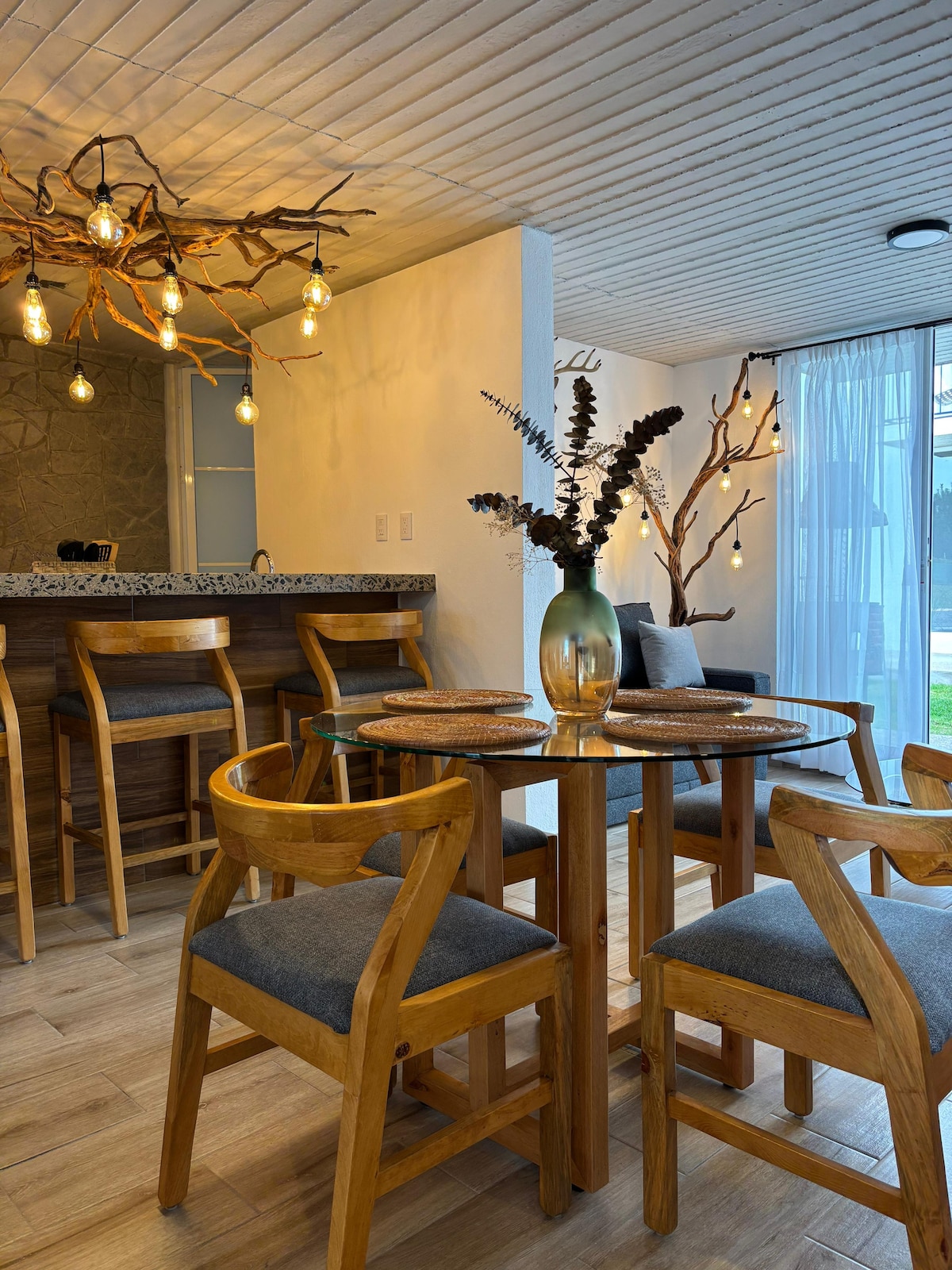 Disfruta de la tranquilidad de nuestro departamento tipo cabaña Chantli, con su cálido ambiente interior y su chimenea de piedra. Relájate en el roof garden con vistas panorámicas, cerca de la fogata y con la compañía de la naturaleza. Ideal para una escapada romántica o una relajante estancia en familia.