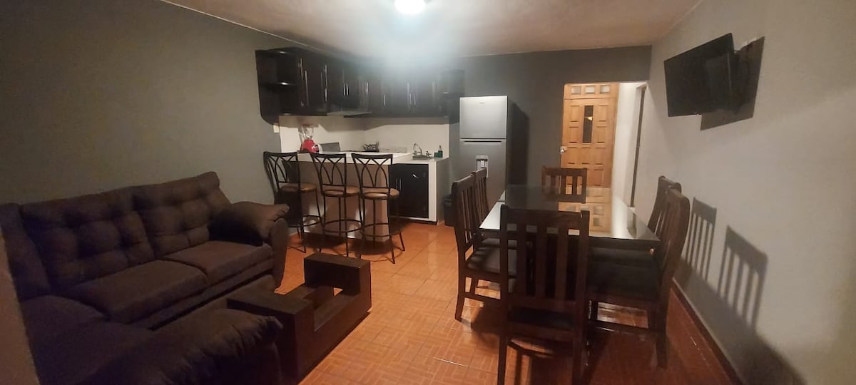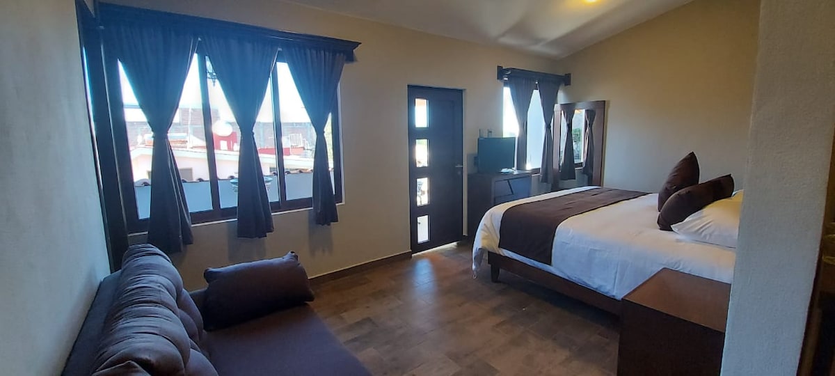 Disfruta de la belleza de Mazamitla con la comodidad que te mereces en nuestras hermosas y espaciosas Suites, Suite #12 cuenta con una capacidad de 2 huéspedes, con cama King Size, cocina, comedor, sofá cama, agua caliente las 24 horas del día, estacionamiento privado y la mejor atención.