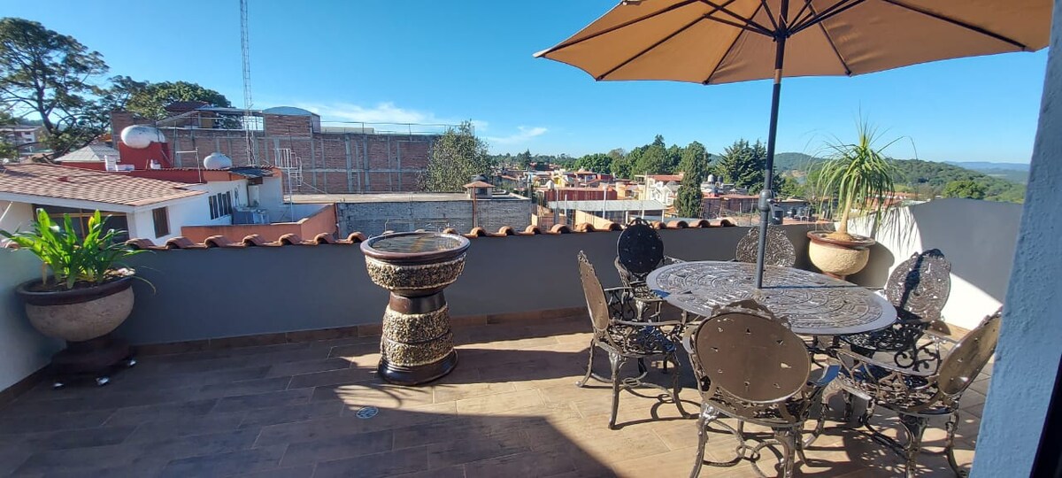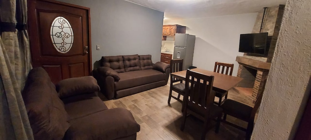 Disfruta de la belleza de Mazamitla con la comodidad que te mereces en nuestras hermosas y espaciosas Suites, Suite #8 cuenta con una capacidad de 2 huéspedes, una con cama King Size, cocina, comedor, chimenea, sofá cama, agua caliente las 24 horas del día, estacionamiento privado y la mejor atención.
