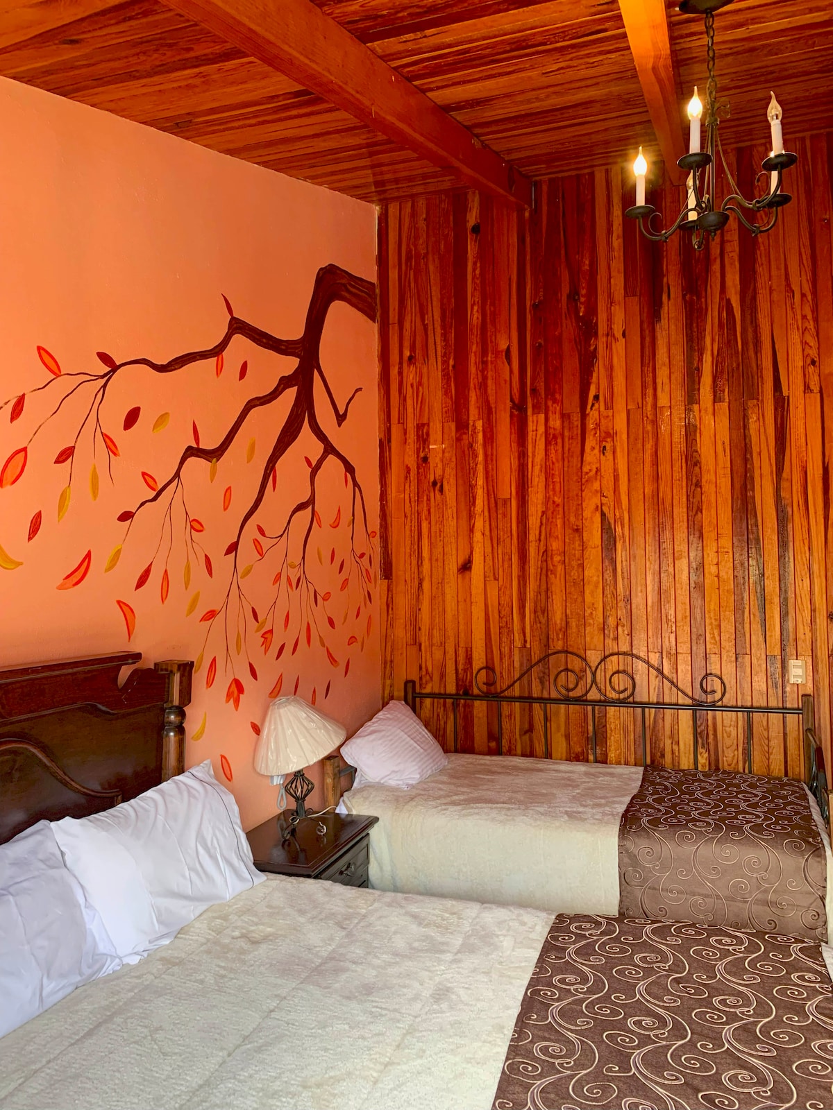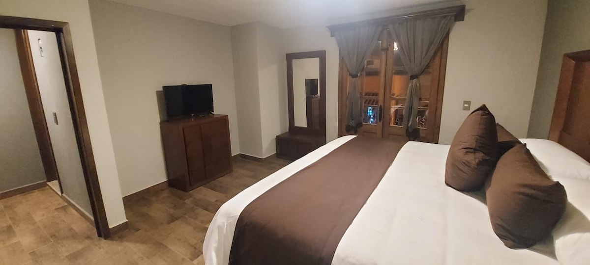 Hospédate en una hermosa y cómoda habitación de hotel dentro del hotel Bosque Escondido a tan sólo unos minutos del centro de Mazamitla. Cuentas con todos los servicios y amenidades del hotel entre ellos cancha de futbol, ciclopista, pista para correr, casita en el árbol, juegos infantiles, sendero panorámico, lago, salón para sesiones, terraza para eventos. Contamos con recepción las 24 horas del día para estar al pendiente de lo que se te pueda ofrecer.
