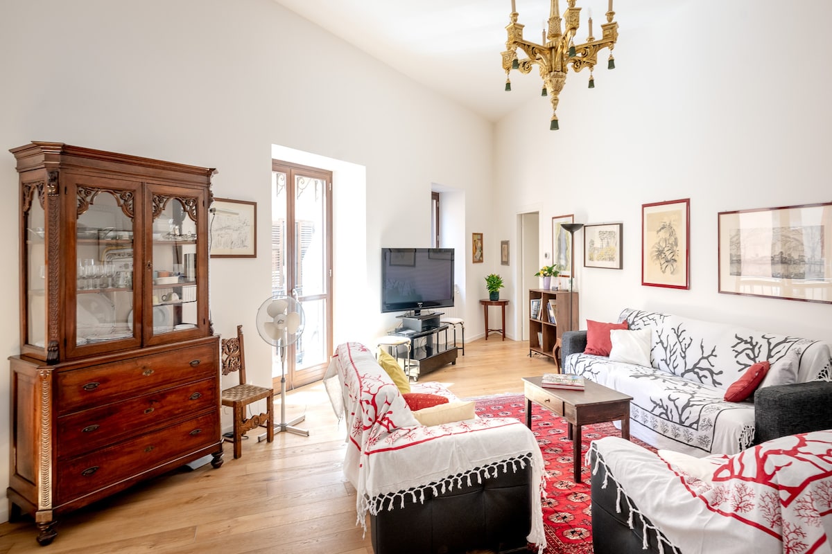 Cortile Galletti is a spacious and charming flat with its own exclusive, original courtyard. The apartment is located on the ground floor of the newly renovated Palazzo Galletti, an old nobiliary residence. Stay in the pulsating heart of the Sicilian capital at walking distance from all main attractions. The flat is 2-minute walk from the train station, two blocks away from Piazza Magione, and a short walk to the beautiful and picturesque markets of Palermo: Ballarò, Capo, and Vucciria.