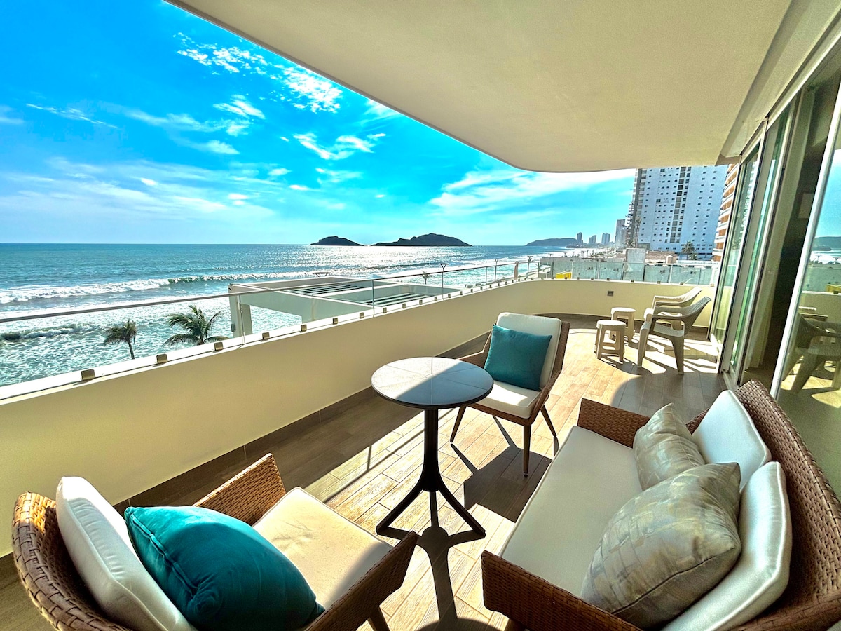 A Guest Favorite for Best Views in Town, centrally located on the Beach Front, among the most sought after Condos in Mazatlan, with an impeccable seven year rental history. Corner Suite on the 14th Floor, Amazing Panoramic Views of Ocean, Beach and City. Walk down to the Sandy Beach, Malecon Boardwalk and Restaurants. Starbucks, OXXO convenience store and Pizza Hut located on the first floor. Pool, Gym, Parking and 24/7 Security... An Absolutely Impressive Beach Front Condo Experience.