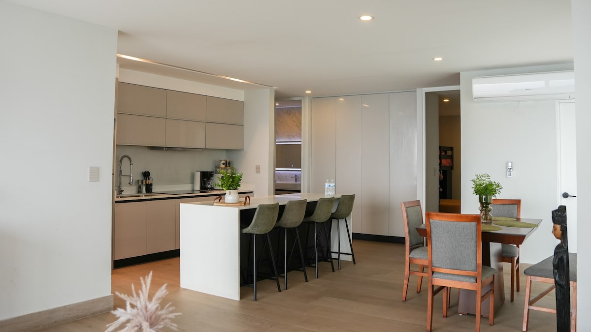 Wake up on the 8th floor of The Grand O Living with panoramic views of the Pacific Ocean and Mazatlán’s iconic malecón. From the living room and terrace, the ocean opens up right in front of you. A spacious, comfortable apartment with a warm, inviting style. Located on the malecón, just 50 m from the beach, with a pool, gym, and resort-style amenities. 2 min to the Mazatlán Letters 5 min to the Great Mazatlán Aquarium 4 min to Teodoro Mariscal Stadium