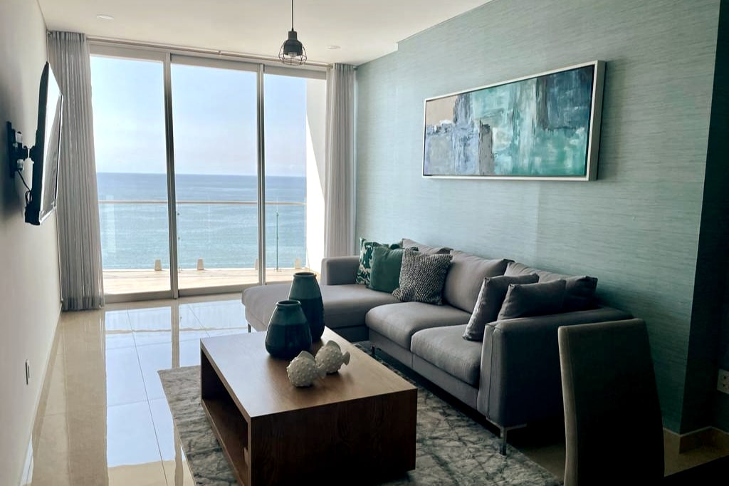 Wake up by the ocean at The Grand O Living, an elegant and cozy space designed to make you relax. Sunrise coffee on the terrace, golden sunsets from the living room. Located on the Malecón, just 50m from the beach, with a resort-style pool, gym and lounge areas. Ideal for couples and families seeking comfort and ocean views. 2 min to Mazatlán Letters 5 min to New Aquarium 4 min to Teodoro Mariscal Stadium