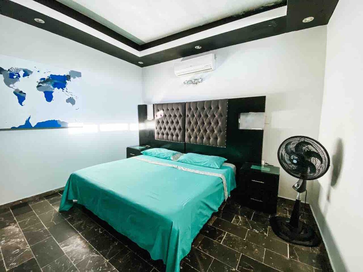 Solo 2 personas con cama matrimonial, cocineta equipada con refrigerador, baño completo y horario flexibe de llegada. Tiene a/c, smart TV c/cable, Wi Fi, NETFLIX gratis, módulo guardarropa, tendedero plegable, banca portaequipajes, plancha y secadora de pelo, y mesa en terraza. Cerca a pie están playa, Centro Histórico, restaurantes, tiendas de conveniencia y departamental, farmacia abiertas las 24 horas, lavandería, iglesias, etc. No se aceptan huéspedes con movilidad reducida.