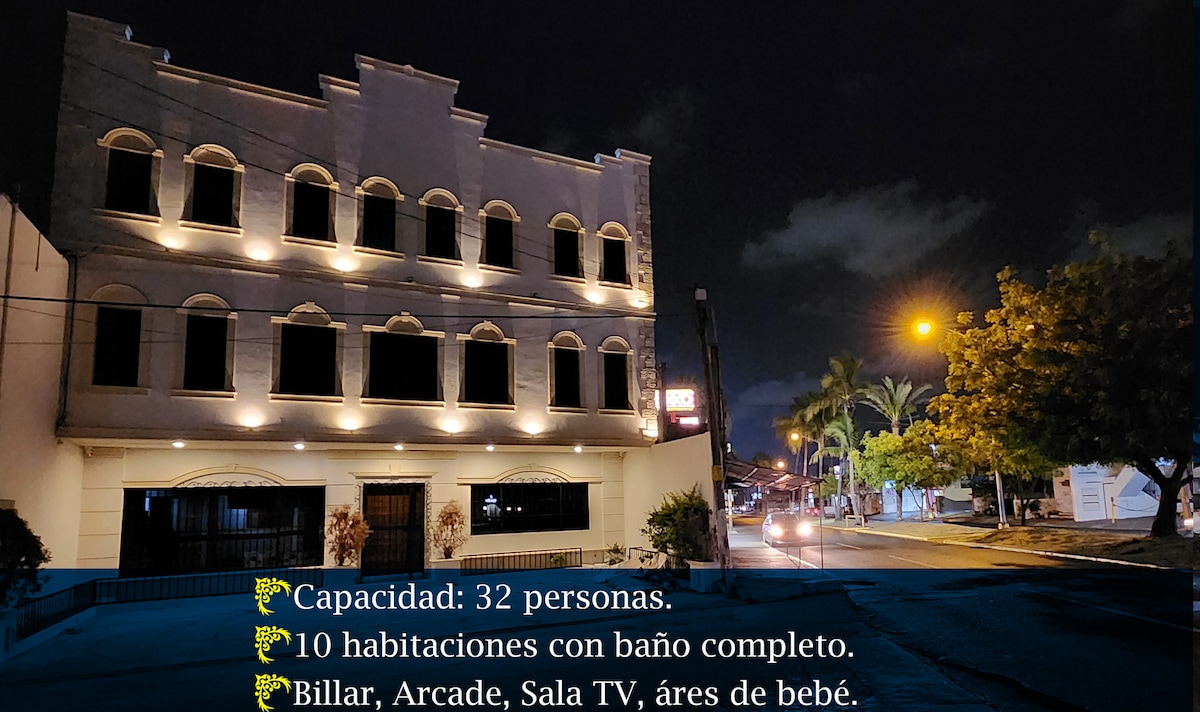 Es una casa para 1 o hasta 16 personas la casa está muy bien ubicada a 100 metros encuestarás un súper que habré las 24 horas también a una cuadra encuentras restaurantes marisquerías y muchos negocios la casa está sobre el parque lineal en 12 minutos llegas a zona dorada y al malecón aparte de esto tienes una alberca privada solo para ty y tus acompañantes la casa es de muy fácil acceso tiene cochera con portón eléctrico para un carro pero afuera pudieran quedar otros dos carros zona muy segura