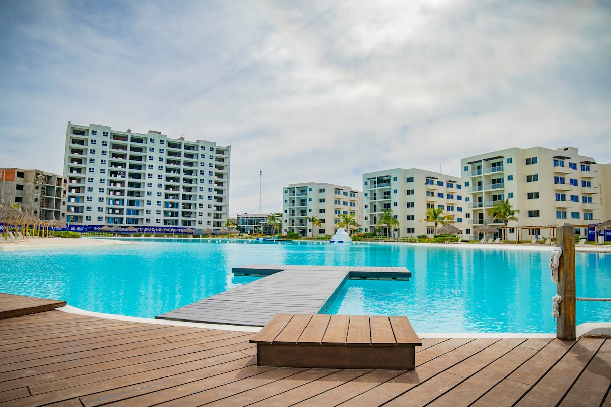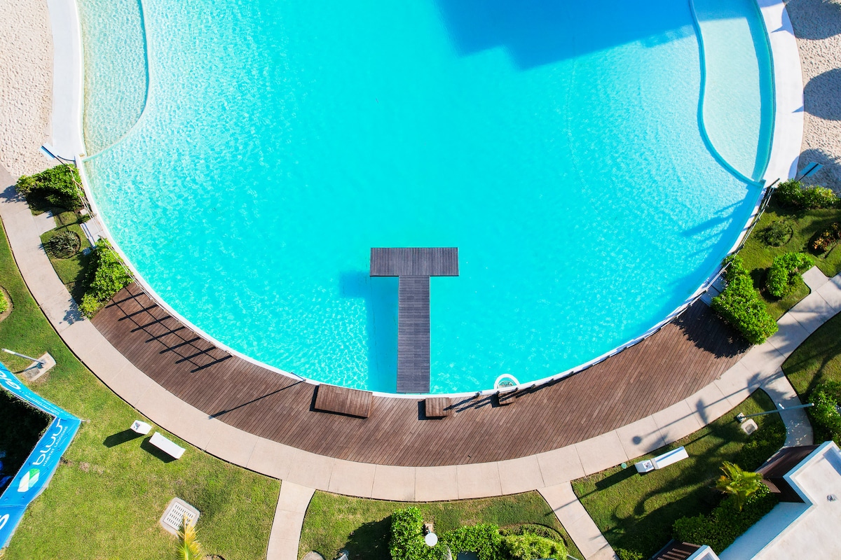 Moderno alojamiento en una espectacular laguna cristalina con playas artificiales de fina arena blanca. Ambiente seguro y familiar. Donde puedes realizar actividades acuáticas, como kayak, paddle surf, windsurf, nadar, asolearte en su playas , jugar en sus canchas de basquetball, volley ball playero, ejercitarte en su gimnasio, correr en su pista alrededor de la laguna, jugar billar, ping pong, cuenta con juegos infantiles. Departamento completamente equipado , cerca de centros comerciales