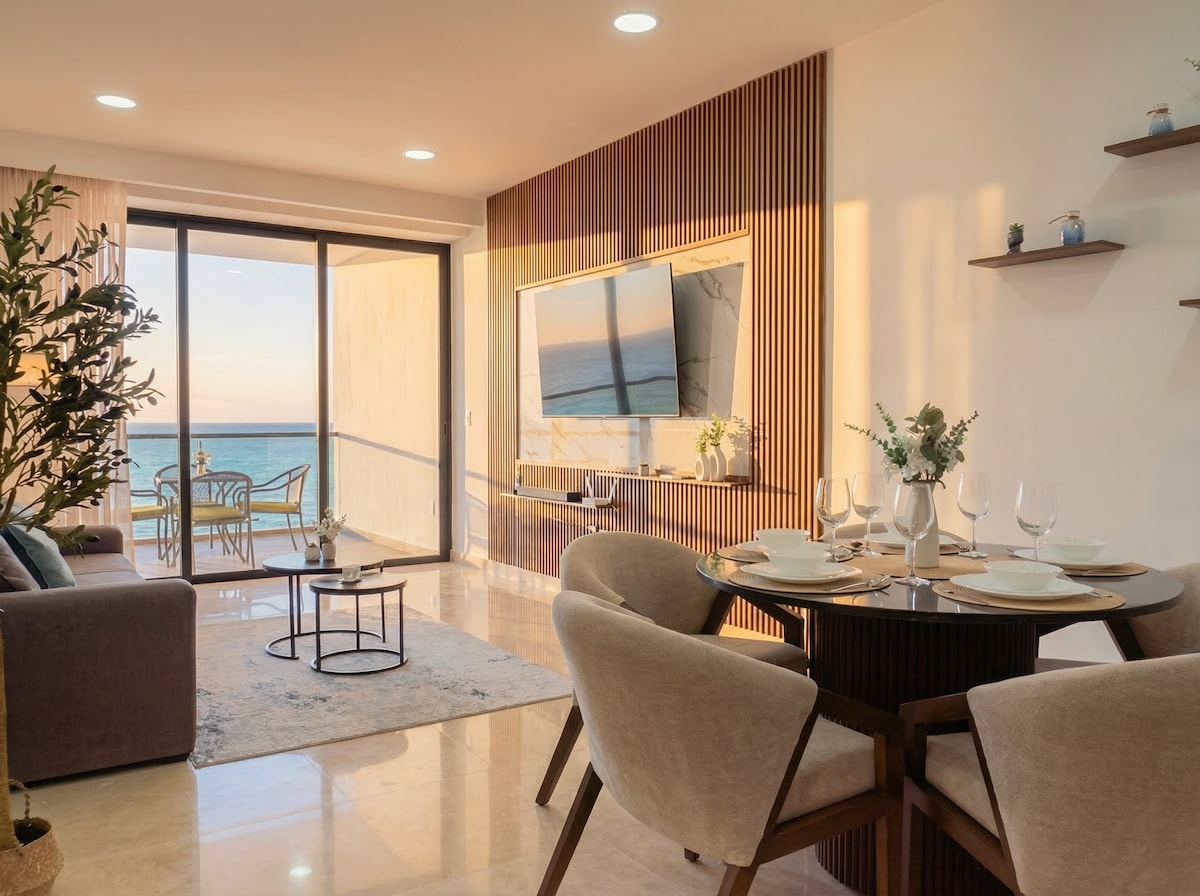 Live an unforgettable vacation in Mazatlan with luxury, comfort and a spectacular ocean view. Enjoy a space designed for your rest with ocean view and luxury finishes. It has 2 bedrooms - each with minisplit and TV. Sleeps up to 4 people comfortably. Living room with 75" screen, spacious dining room and fully equipped kitchen. Everything you need to relax and enjoy paradise!