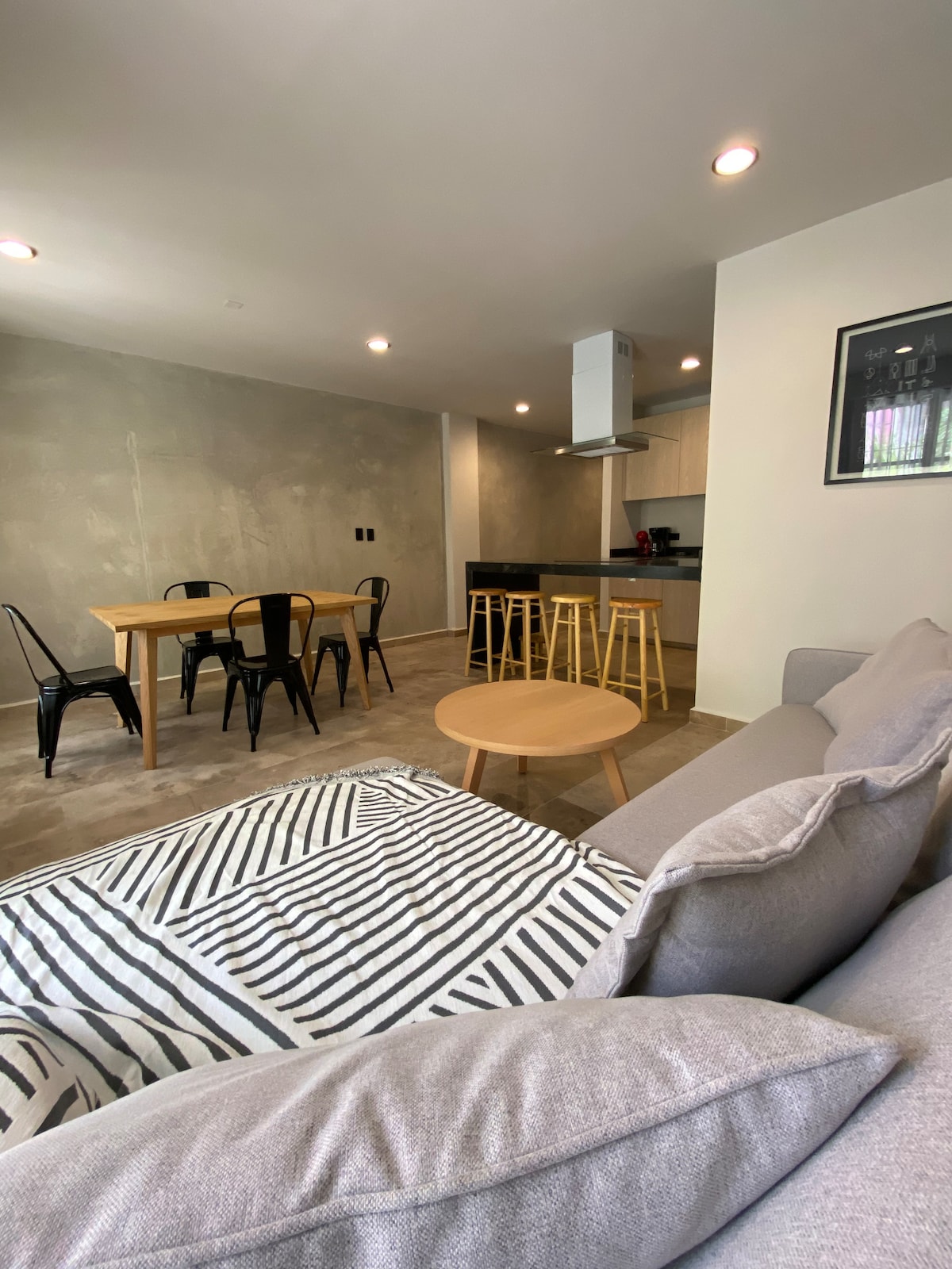 Enjoy luxury and modernity in this exclusive apartment in Mazatlán. From the balcony, take in spectacular sunsets over the ocean. Located in one of the port’s top condominiums, you’ll have access to first-class amenities: an infinity pool, spa, and relaxing common areas. The private beach is spacious and pristine, perfect for special moments with friends or family. Experience a unique stay in a space designed for your comfort.