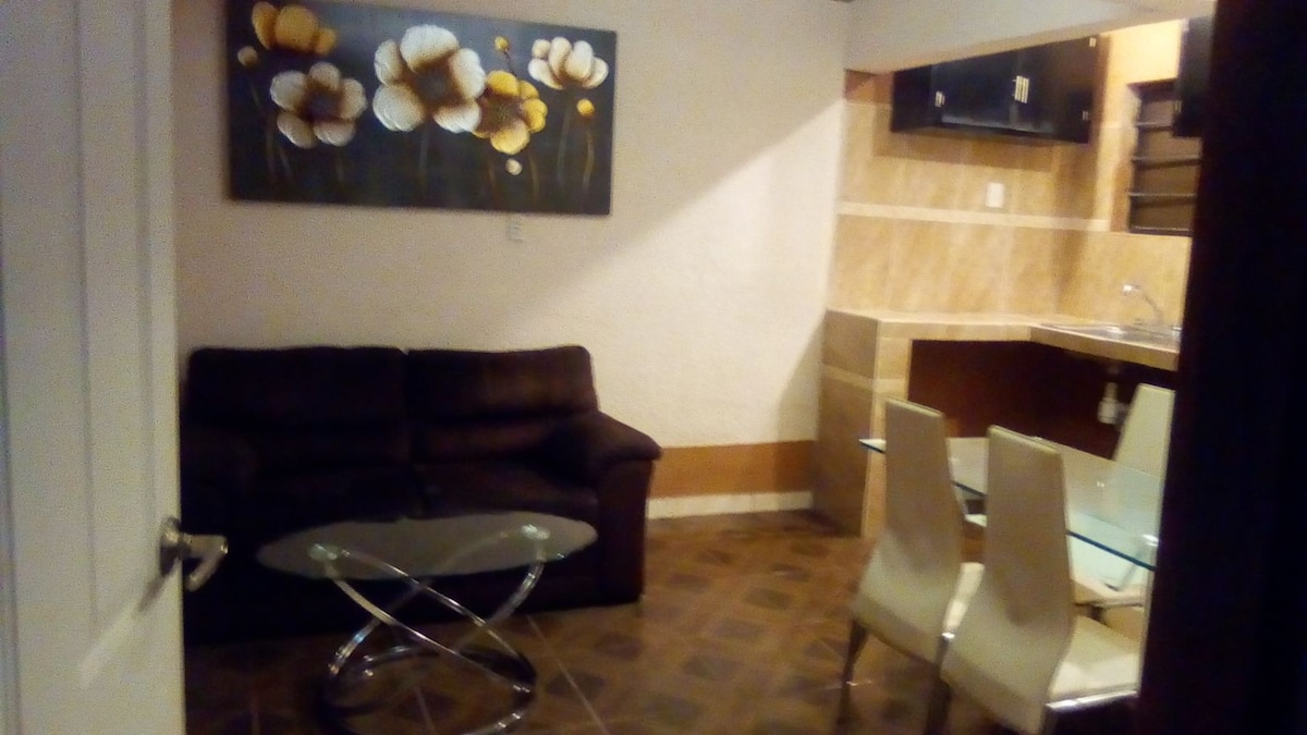 Estudio de una habitación con baño, cocina y un área de sala-comedor. especial para visita estudiantil , negocios o turismo. Lugar confortable con excelente ubicación frente al mar. Cuenta con una cama matrimonial, un sofá cama, cocineta completa, closet, baño completo y comedor. Nuestro alojamiento NO es compartido, es una sola planta con varios departamentos; cada quien con su entrada privada y su respectiva privacidad. Estamos en UN TERCER PISO, NO HAY ELEVADOR.