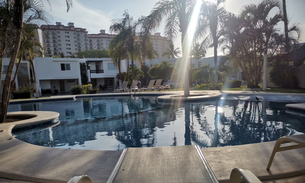 Disfruta de unas vacaciones inolvidables, en este hermoso, céntrico y espacioso departamento, zona tranquila, seguridad 24 horas , a 3min del central park, estadio de beis ball, y acuario, a 2 cuadras de la playa ,oxxo enfrente, a 3 min de tiendas autoservicios y bancos. excelentes amenidades para disfrutar alberca, jacuzzi, sala de cine, gymm, mesas de barajas y pinpon.