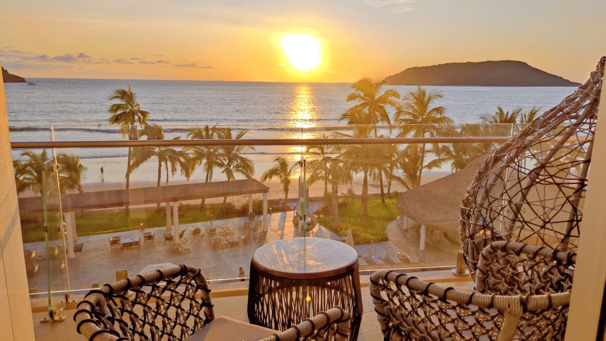 WELCOME TO THE HEART OF MAZATLAN! The MOST desirable area to spend your beach vacation, Mazatlan’s Golden Zone. Wake up every morning with the soothing sounds of the gentle waves from the Pacific Ocean in this gorgeous, brand new, Beach Front condo. The area has countless amenities, just steps away from EVERYTHING: fine dining restaurants, bars, lounges and all the nightly entertainment your heart desires. Some of the best shopping here at the local markets, also steps outside the building