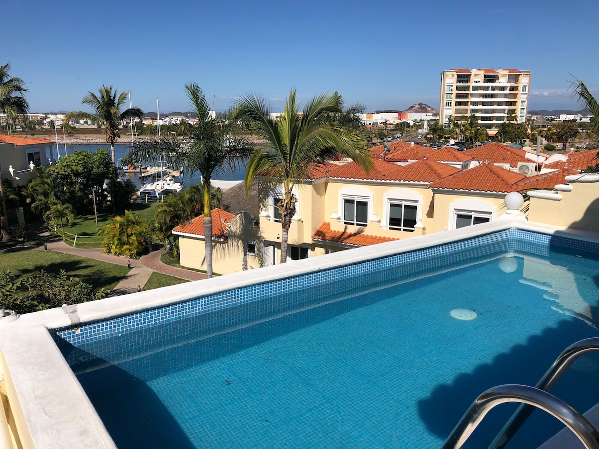I offer you one of my Villas facing the marina so you can enjoy it with your friends or family. This Villa is fully furnished and tastefully decorated. It is located in a tourist development in the marina area, which is the best and most modern area in Mazatlán. The Villa is spacious, decorated in Mediterranean tones, providing a very pleasant space for a family of 6 people.