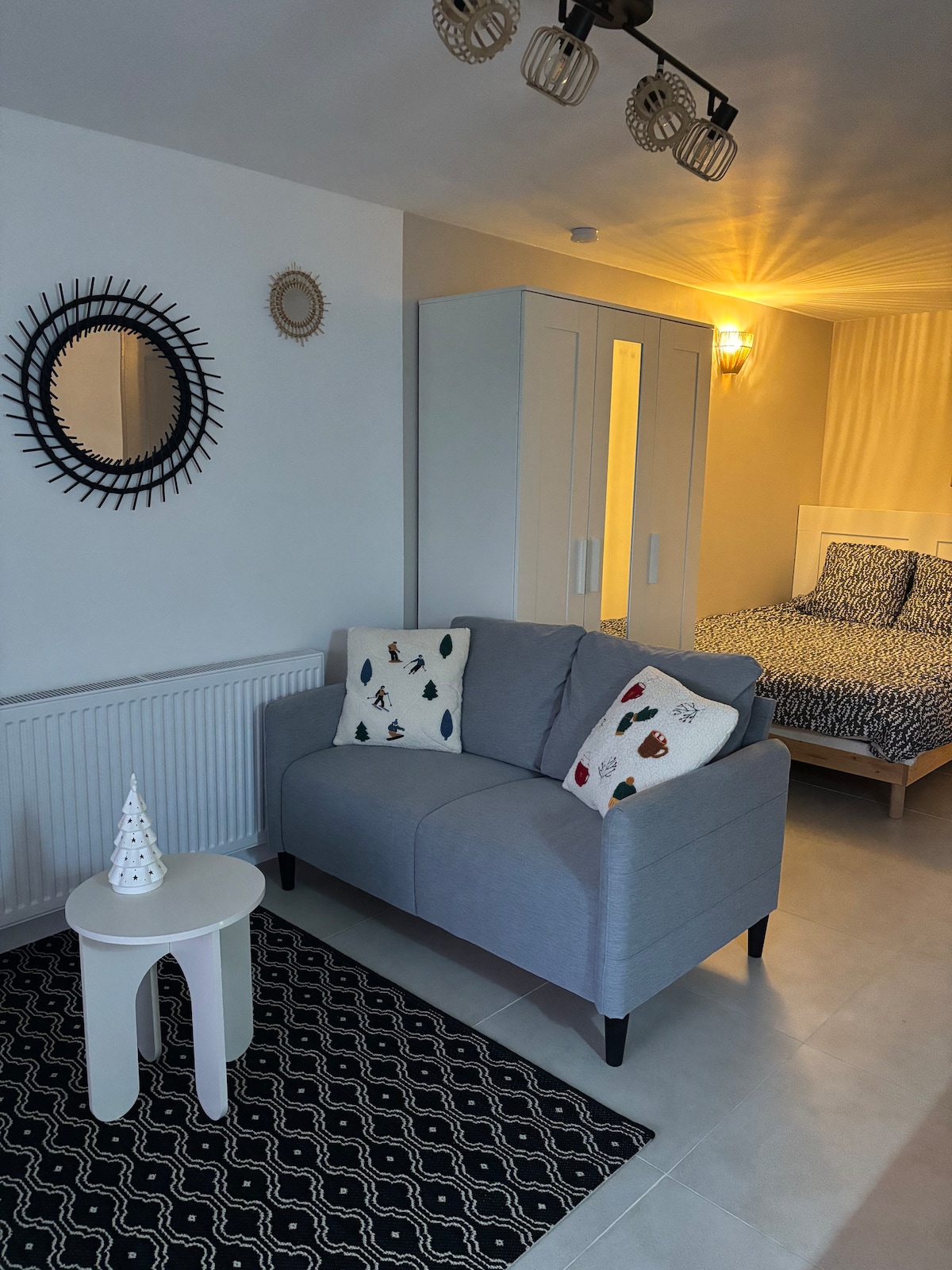 Bienvenue chez nous ! C'est avec discrétion et bonne humeur que nous vous accueillons dans notre appartement situé au dessus de notre maison et à la campagne. L'appartement a une entrée complétement indépendante et deux places de parkings ! Equipée d'une cuisine, une salle de bain et WC ainsi que d'une chambre avec un lit 140x190 cm et d'un clic clac dans le salon 140x190cm. Les draps et serviettes ne sont pas fournis. Nous demandons de faire un minimum de ménage avec le nécessaire fournis.