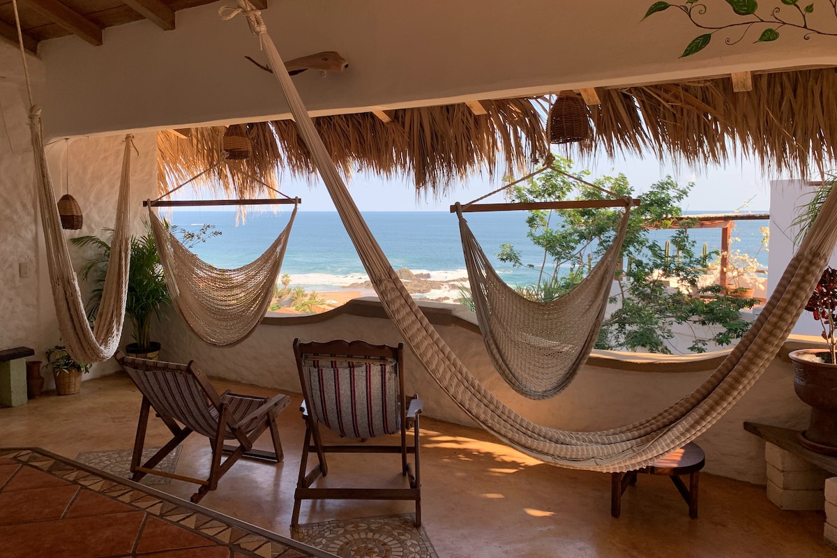 Discover your ideal Mazunte getaway at Casa Atma -Ether, a bright 1BR apartment with a private rooftop offering spectacular, breathtaking views of Mazunte. Enjoy the sunrise and fresh ocean views from the hammock or lounge seating. The apartment has a King bed, a sofa bed, and a full kitchen with an island. The location is central to two beaches, and the entrance to Punta Cometa is down the street. Comes with free parking, Wi-Fi, and hot water.