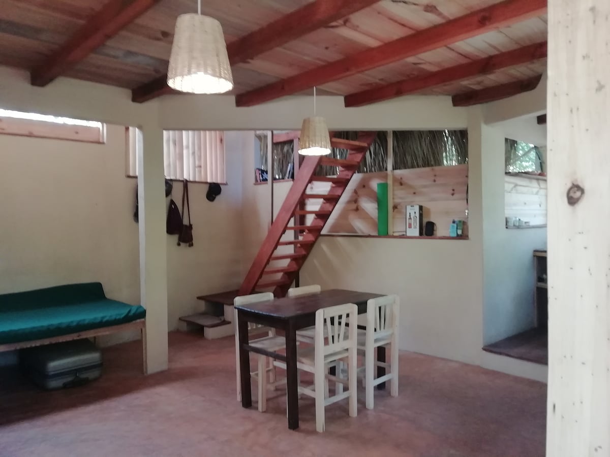 Descubre esta hermosa casita de playa, a solo 1 minuto a pie de la playa principal de San Agustinillo. Perfecta para surfers, parejas y viajeros que buscan confort. Cuenta con una cama queen, sofá cama, baño, cocina totalmente equipada y un encantador patio semi exterior con hamaca. Ubicada en el corazón del pueblo, rodeada de tiendas y restaurantes. Disfruta del aire acondicionado en el cuarto y estacionamiento privado. ¡Tu escape perfecto al paraíso te espera!
