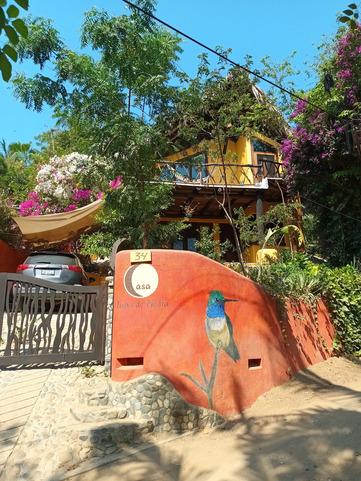 Villa Colibrí es una espaciosa y hermosa casa sumergida en una increible naturaleza, a tan solo 300 metros de la maravillosa bahía de Puerto Angel. La casa cuenta con cuatro espaciosas habitaciones con aire acondicionado, dos baños completos con agua caliente, cocina totalmente equipada, dos salas, área de billar, Wi-Fi, T.V. , estacionamiento privado, patio y terraza con hamacas. Villa Colibrí te ofrece un cómodo y acogedor espacio, para que disfrutes de unas mágicas vacaciones.