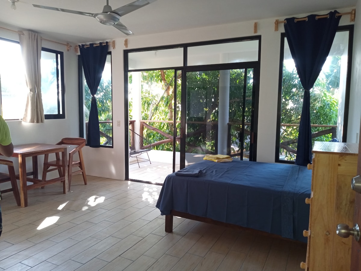 Disfruta de nuestro Loft en la naturaleza de Zipolite y a 8 minutos de la playa. El Loft cuenta con una cómoda cama Queen Size, aire acondicionado, internet Starlink, ventiladores de techo, escritorio, caja fuerte, plancha, una cocina equipada para preparar tus alimentos, un par de butacas, una mesa comedor y en el baño tienes opcion de ducharte con agua caliente. Todo para estar cómodo en una de las playas mas paradisíacas de la costa Oaxaqueña.