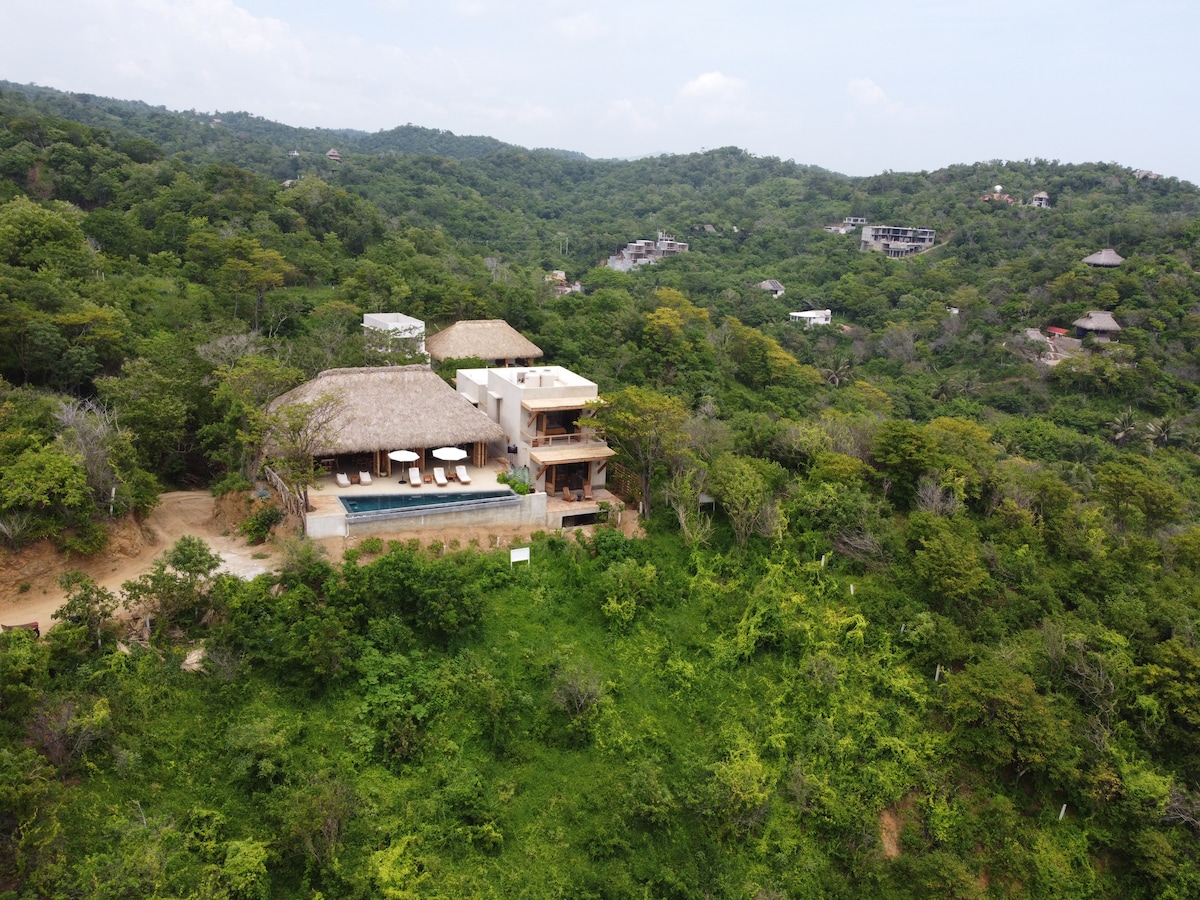 CASAPARAÍSO: el lugar perfecto para disfrutar de tu estancia en Mazunte de manera elegante y a la vez en contacto con la naturaleza, aprovechando de una espectacular vista al mar. En tan solo 1 minuto caminando estarás con tus pies en la arena de la famosa playa RINCONCITO. La hermosa ubicación cuenta con la cercanía de todos los servicios (restaurantes y tiendas)y una conexión Starlink de última generaciones.El único sonido será el de las olas: una estancia inolvidable...