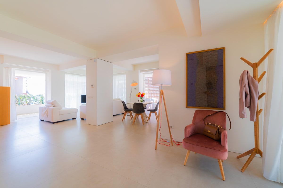 Appartamento di 70 mq interni e 20 mq di terrazza panoramica vista mare, lussuosamente arredato e arricchito di preziose opere d'arte. I quadri d'autore e le manifatture locali come teste di moro e maioliche vi accoglieranno nel cuore della tradizione siciliana,ogni stanza è climatizzata e curata in ogni dettaglio, con SMART TV 75' QLED posta nella sala principale in una splendida cornice con vista mozzafiato. Garage su richiesta, da confermare al momento della prenotazione (€ 15,00 per giorno).