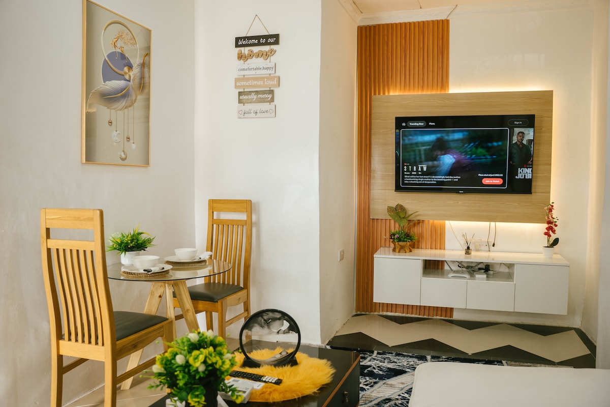 Tangerine Sky Loft– Penthouse Retreat Perched high above the city, penthouse that blends modern elegance with cozy charm. Designed for those who loves spacious living and breathtaking skyline views, sunsets and twinkling city lights. A mix of modern and warm rustic accents, with vibrant tangerine touches,decors that add a pop of warmth and energy. The open-plan living area,equipped kitchen, perfect for unwinding in style. Just minutes from Shoppers Plaza, about 8 minutes to the city centre.