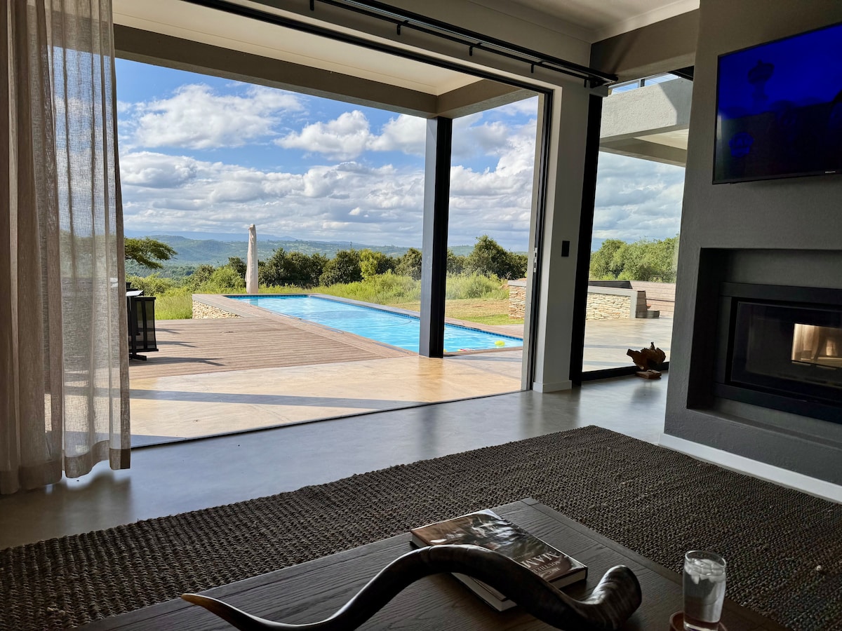 Located on one of the top 10 Wildlife Estates in South Africa, with close proximity to the Big 5 Kruger National Park and KMI Airport. This open planned, luxurious & spacious 4 bedroom, 4.5 en-suite bathroom house is ideal for families. Enjoy a cocktail next to the swimming pool or relax in the hot tub with the most amazing views of the bush & wild animals. The house consist of a boma, inside braai & cosy fireplace for those cold winter days. Every room has magnificent views of the bushveld.